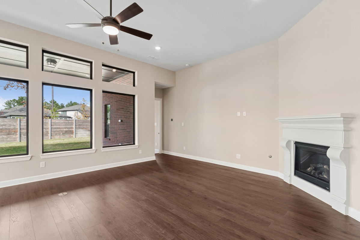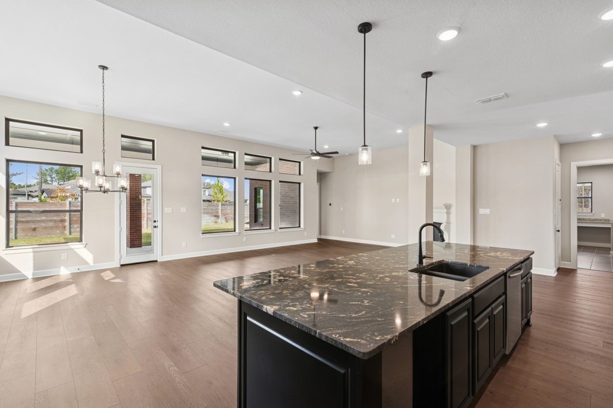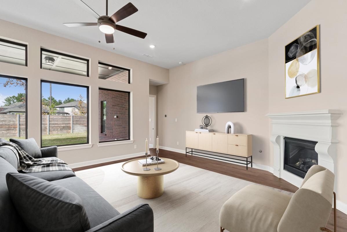 The thoughtfully designed Layton floor plan features four generously sized bedrooms, three full bathrooms, and one half bath, providing ample space for family and guests. The heart of the home is the inviting family room, highlighted by a beautiful fireplace that creates a warm and welcoming atmosphere for everyday living and entertaining.