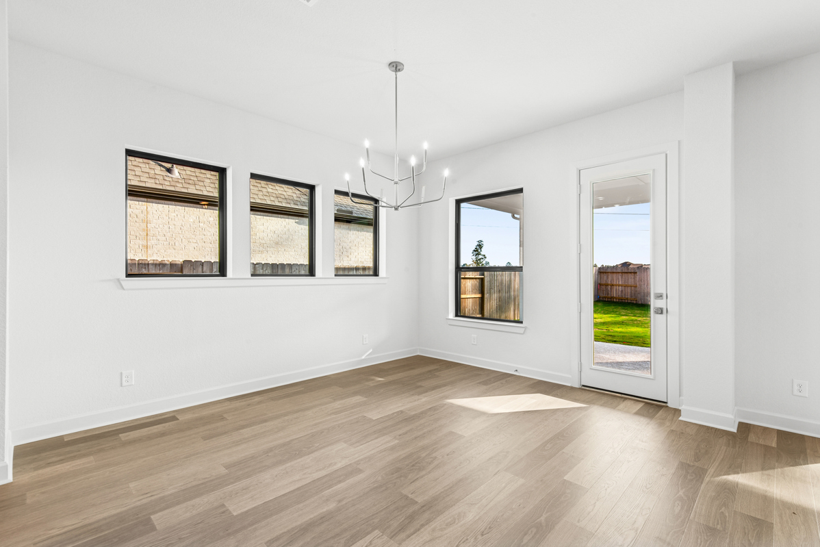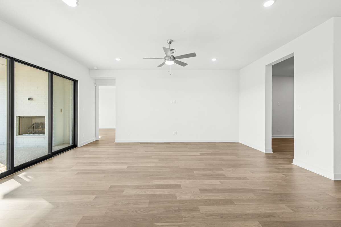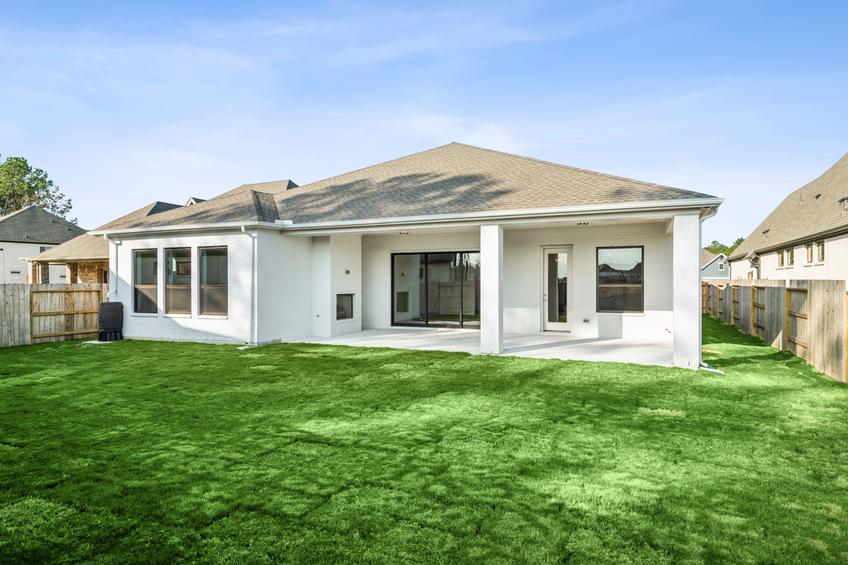 This stunning Milburn floor plan features four spacious bedrooms, three full bathrooms, and sits on an oversized homesite with an outdoor living patio complete with a cozy outdoor fireplace—perfect for entertaining or relaxing year-round.