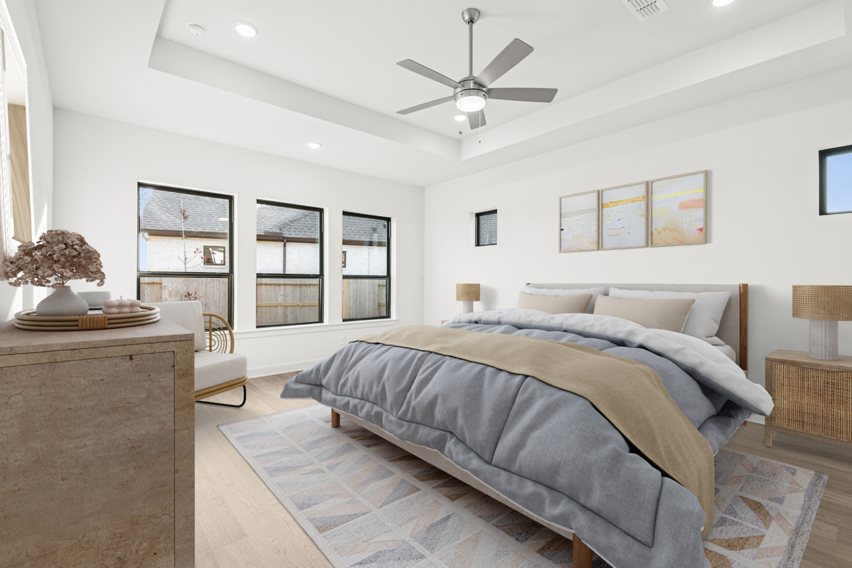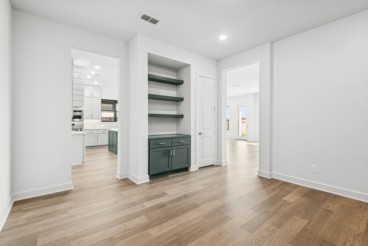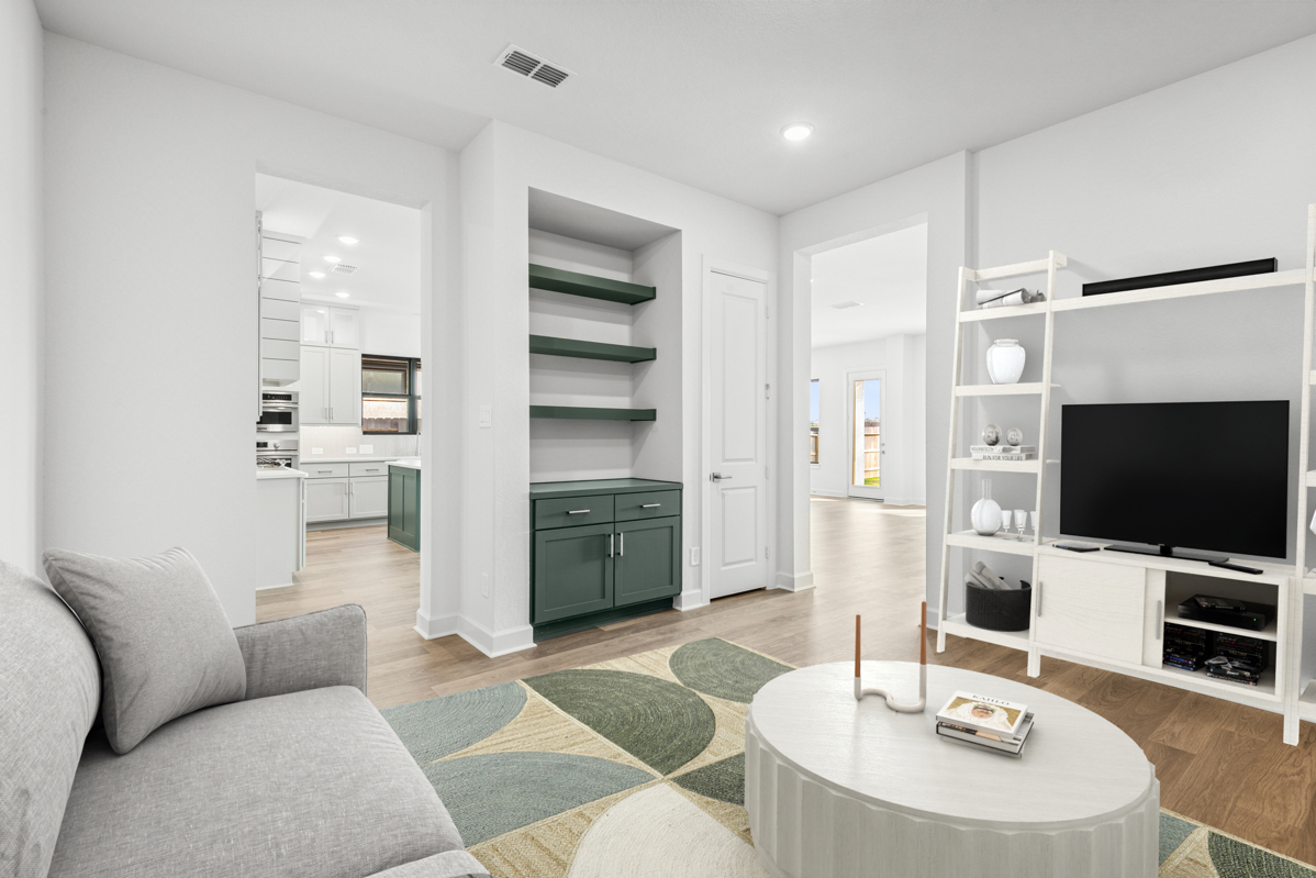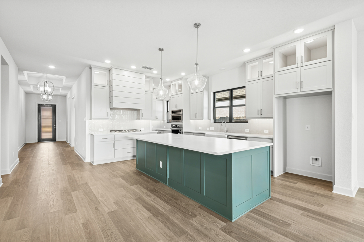 This stunning Milburn floor plan features four spacious bedrooms, three full bathrooms, and sits on an oversized homesite with an outdoor living patio complete with a cozy outdoor fireplace—perfect for entertaining or relaxing year-round.