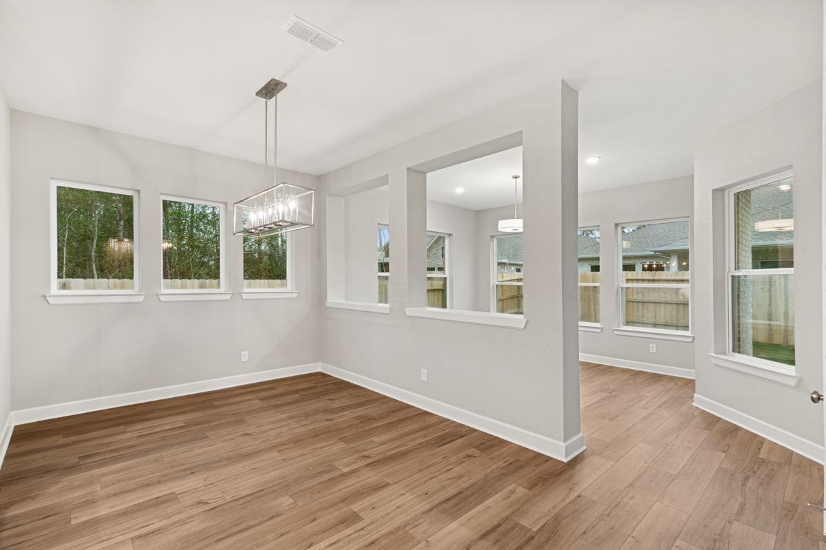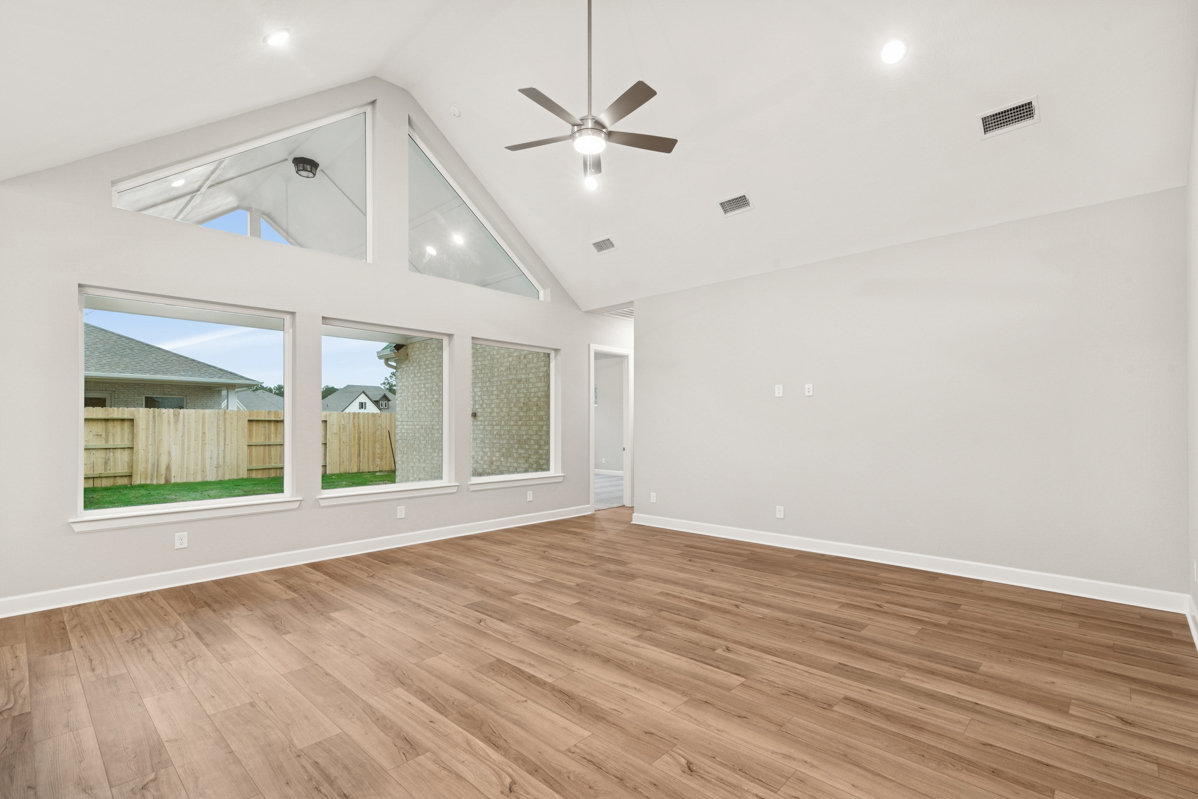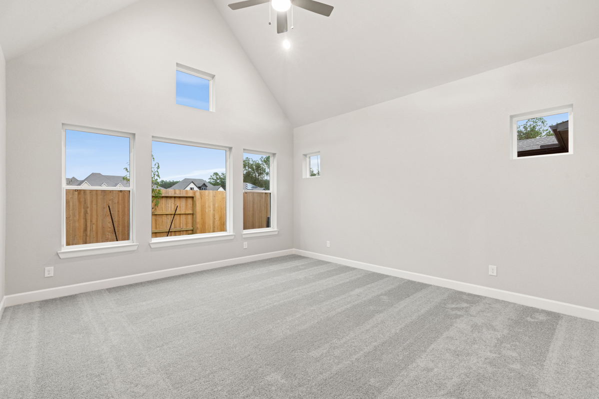 Live colorfully in Artavia. This expansive four-bedroom, three and a half bathroom home features vaulted ceilings in the family room, which opens to the kitchen and dining areas.