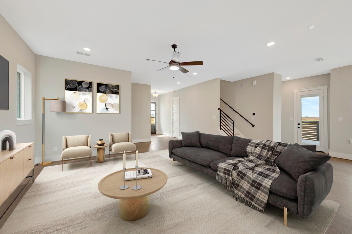 The Hoover in Easthaven at Bridgeland Central offers 2,978 square feet of thoughtfully designed living space with 4 bedrooms and 3.5 baths. All bedrooms are conveniently located upstairs, creating privacy for daily living. A private first-floor study provides the perfect work-from-home retreat, while the upstairs game room offers a versatile space for fun and relaxation.