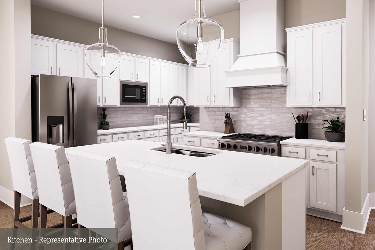 The open-concept layout connects the kitchen, dining area and family room, creating a warm and inviting environment for everyday life and entertaining. A convenient butler’s pantry enhances both functionality and charm.