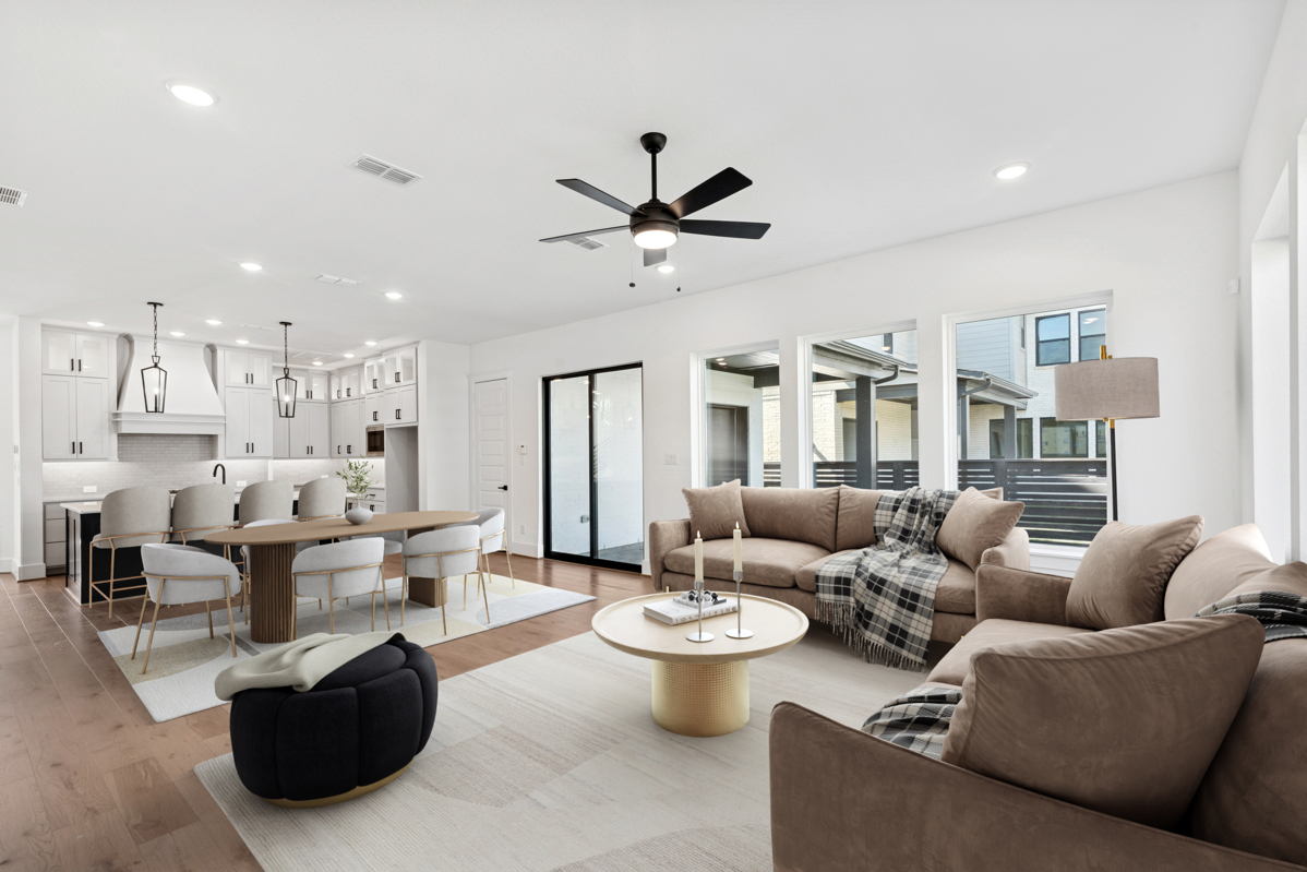 The open-concept kitchen, dining area, and family room provide an inviting space for daily living and entertaining. A convenient butler’s pantry enhances functionality and flow throughout the main level.