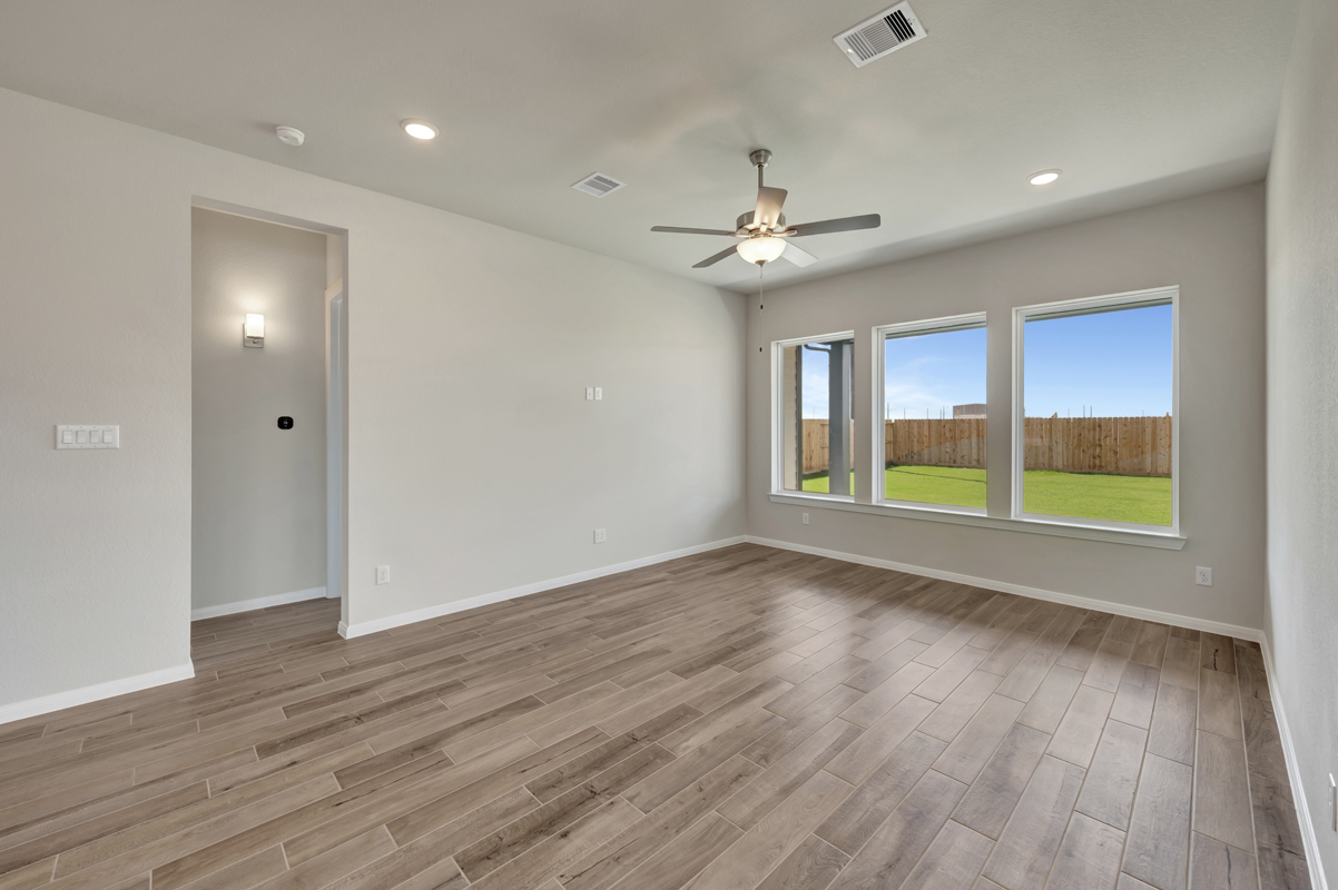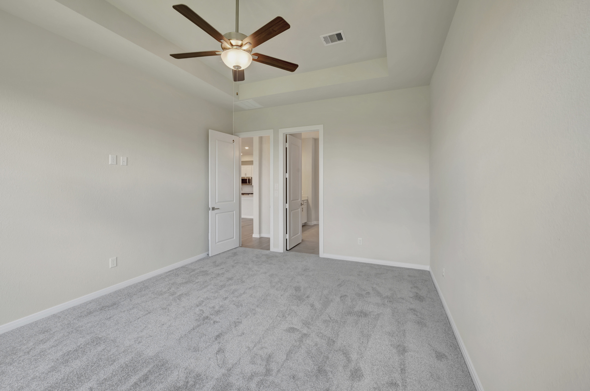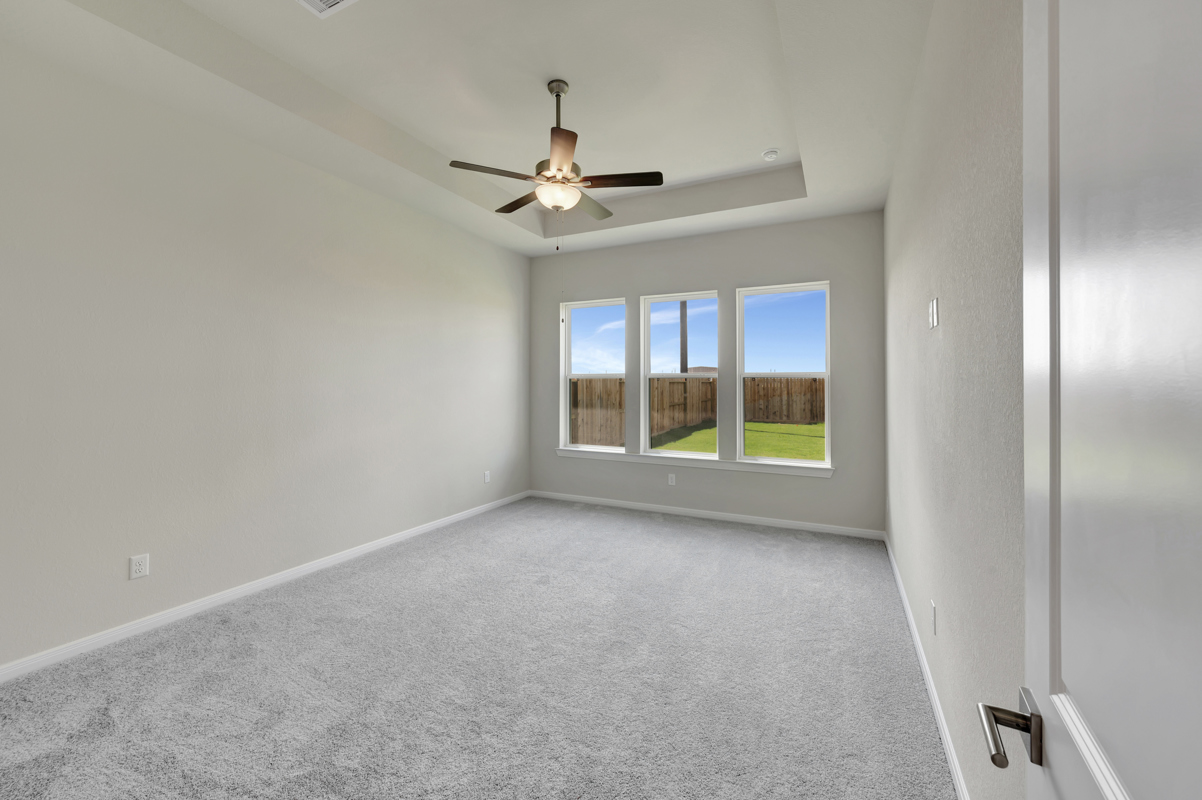 Enjoy outdoor living on the extended covered patio with peaceful views and no rear neighbors for added privacy. The Owner’s Retreat provides a true escape with a spa-inspired bath and a spacious walk-in closet—both free of carpet.