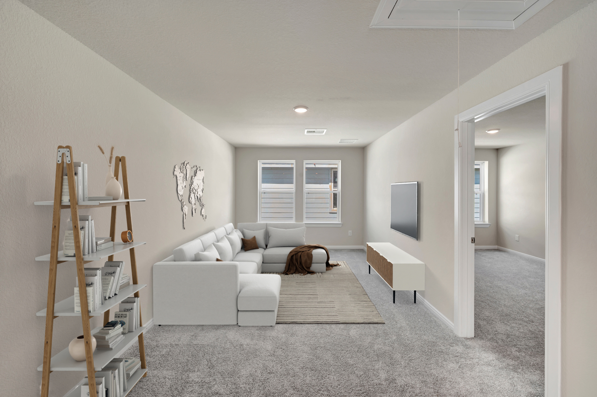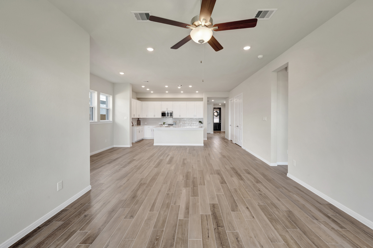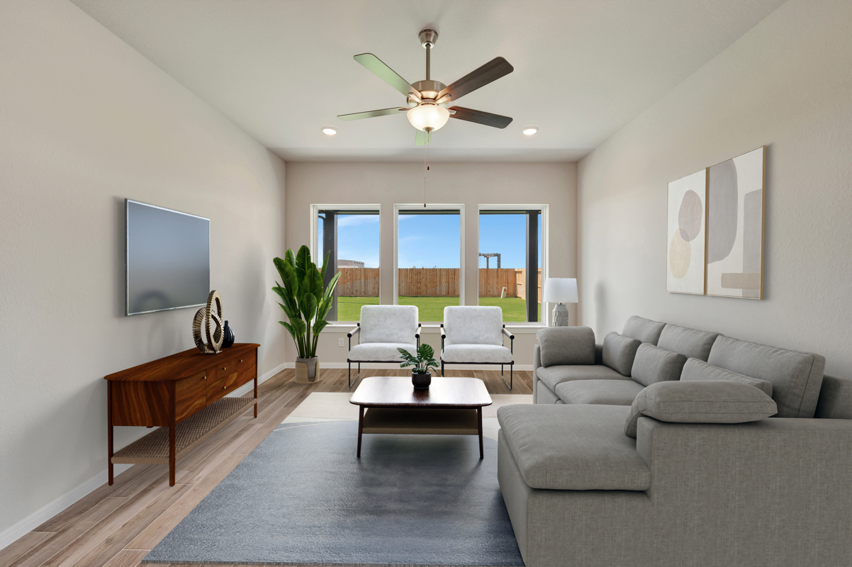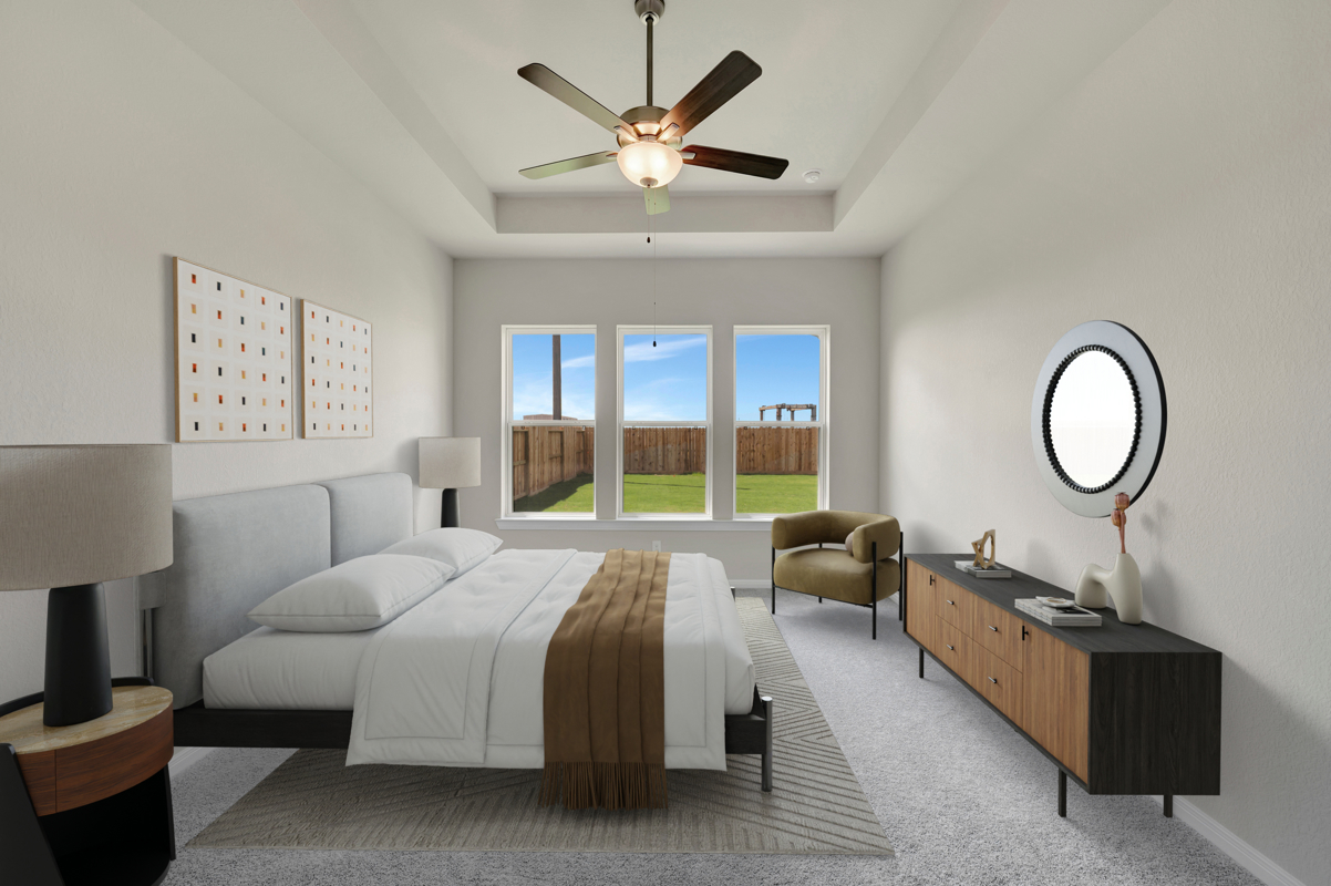 Enjoy outdoor living on the extended covered patio with peaceful views and no rear neighbors for added privacy. The Owner’s Retreat provides a true escape with a spa-inspired bath and a spacious walk-in closet—both free of carpet.