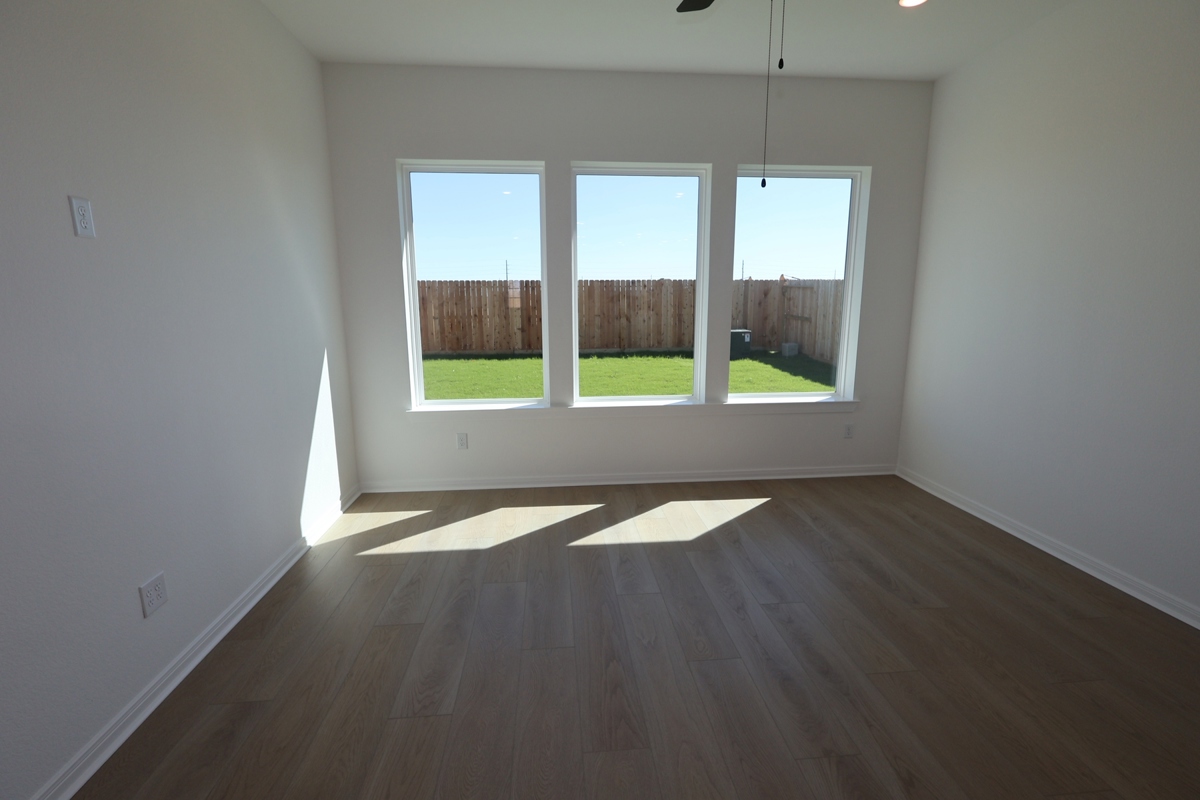 Designed with the Amalfi Design Collection, this home showcases crisp white cabinetry and durable light luxury vinyl plank flooring that extends throughout, including the Owner’s Retreat and closet.