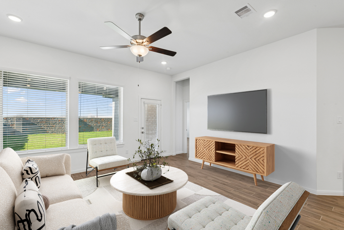 The extended Owner's Retreat is a true sanctuary, complete with a spa-inspired Owner's Bath, an extended shower, and a spacious walk-in closet—both designed without carpet for a sleek, elevated touch. An enclosed study with French doors adds versatility, providing the perfect private space to work, read, or create.