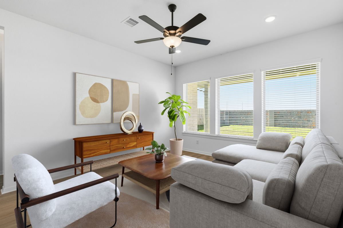 The Owner’s Retreat is a private haven with an extended shower in the Owner’s Bath and a sprawling walk-in closet designed without carpet for a clean, modern finish. Step outside to the extended covered patio with a gas stub for grilling and enjoy peaceful outdoor living with the added benefit of no back neighbors.