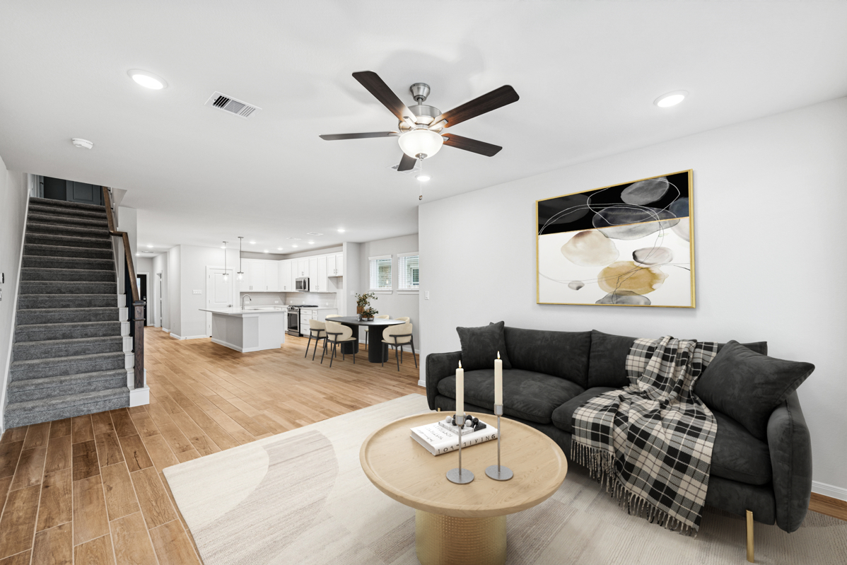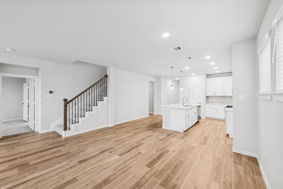 Located in the final phase of our 45-foot homesites, this two-story home welcomes you with elegant porcelain wood-look tile flooring throughout the common areas, combining the warmth of natural wood with the durability and low maintenance of porcelain.