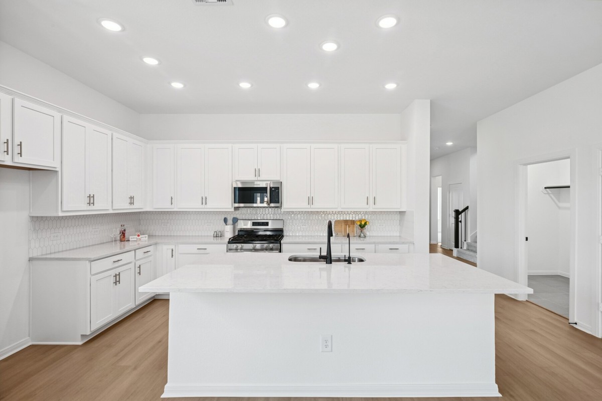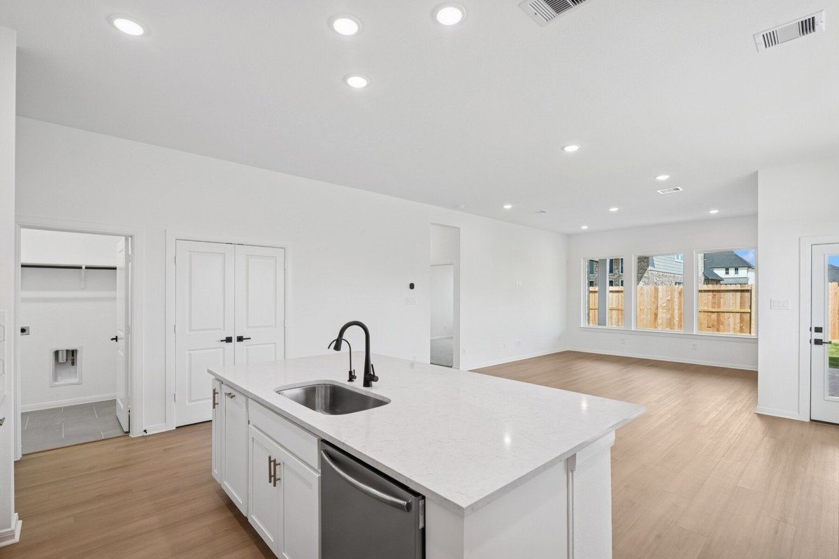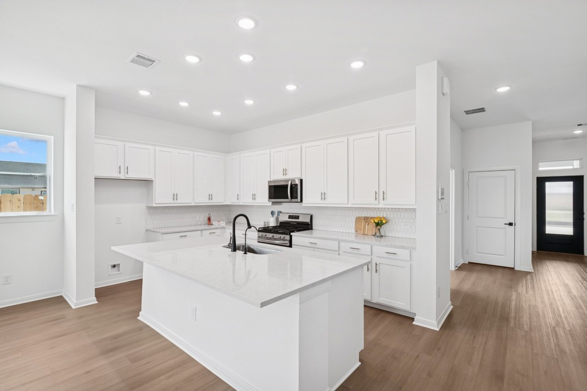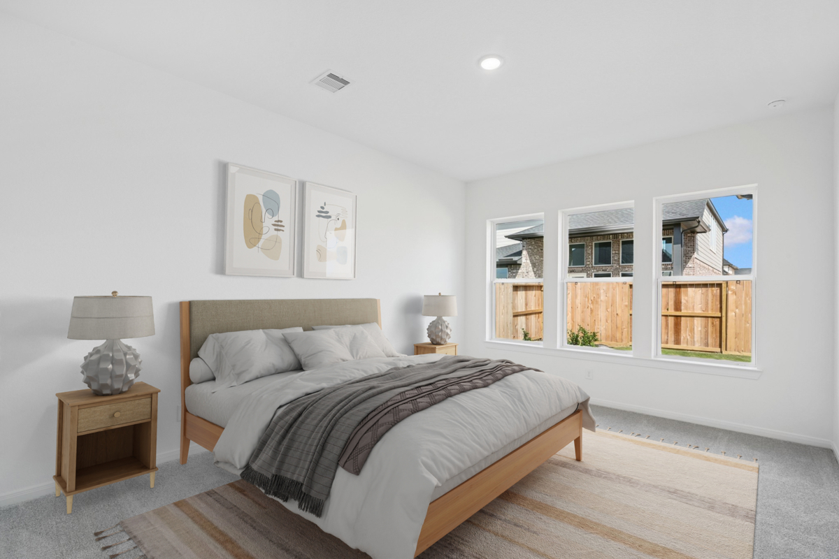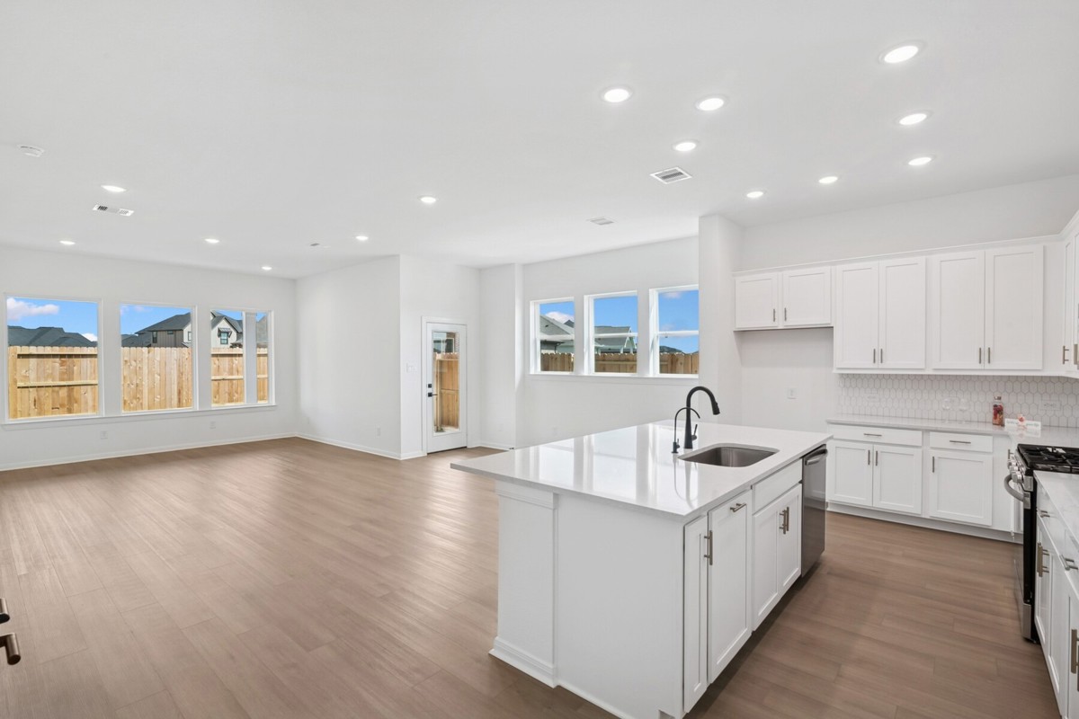 Experience comfort and style in this two-story Harperville in Jubilee. This 4-bedroom, 3-bath home features an open kitchen with a large island, ample cabinetry, and built-in trash pull-outs overlooking the family and dining rooms perfect for everyday living and gatherings. A private front study offers flexible space for a home office or hobby room. The Owner’s Retreat sits at the back of the home with a spacious Super Shower, double sinks at the vanity and a generous walk-in closet. A second downstairs bedroom creates an ideal guest suite or mother-in-law option with a full bath. Upstairs, a sectioned staircase leads to a versatile game room and two additional bedrooms, providing plenty of space for family or visitors. Enjoy outdoor living on the large wraparound front AND back porch, offering room to relax and unwind.