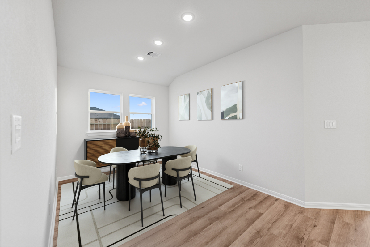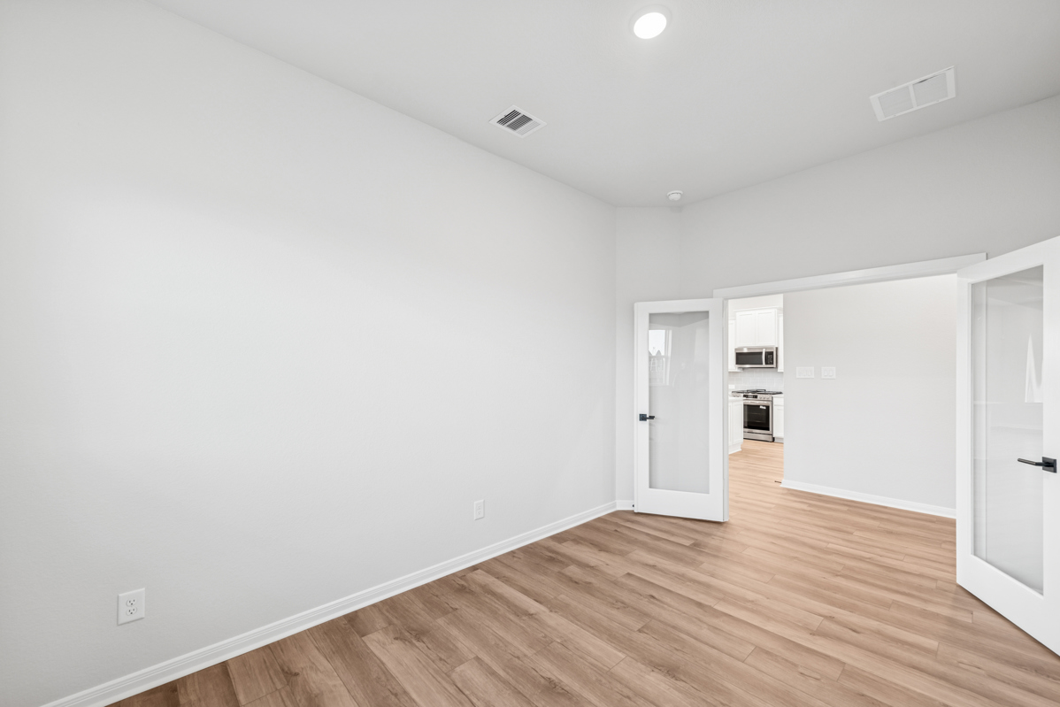 Discover a rare opportunity in Jubilee. This is the last home in this section with NO BACK NEIGHBORS, set in a quiet cul de sac and featuring a stunning all-brick exterior. The Hidden Haven backs to a peaceful dry detention area, offering extra privacy and a calm setting. This 3-bedroom, 2-bath home includes a versatile study and a thoughtful layout that feels inviting and functional. Inside, bright white cabinetry pairs beautifully with rich wood tone luxury vinyl floors that flow through the main living areas.