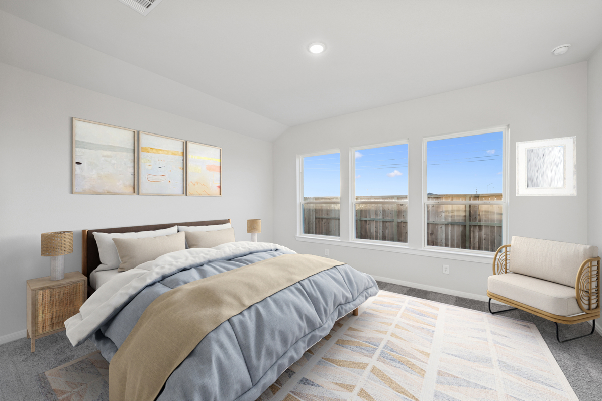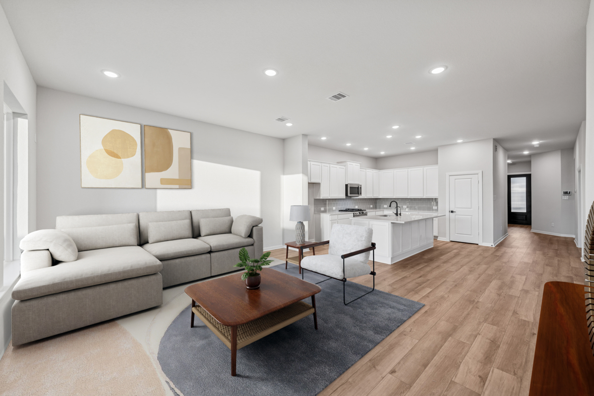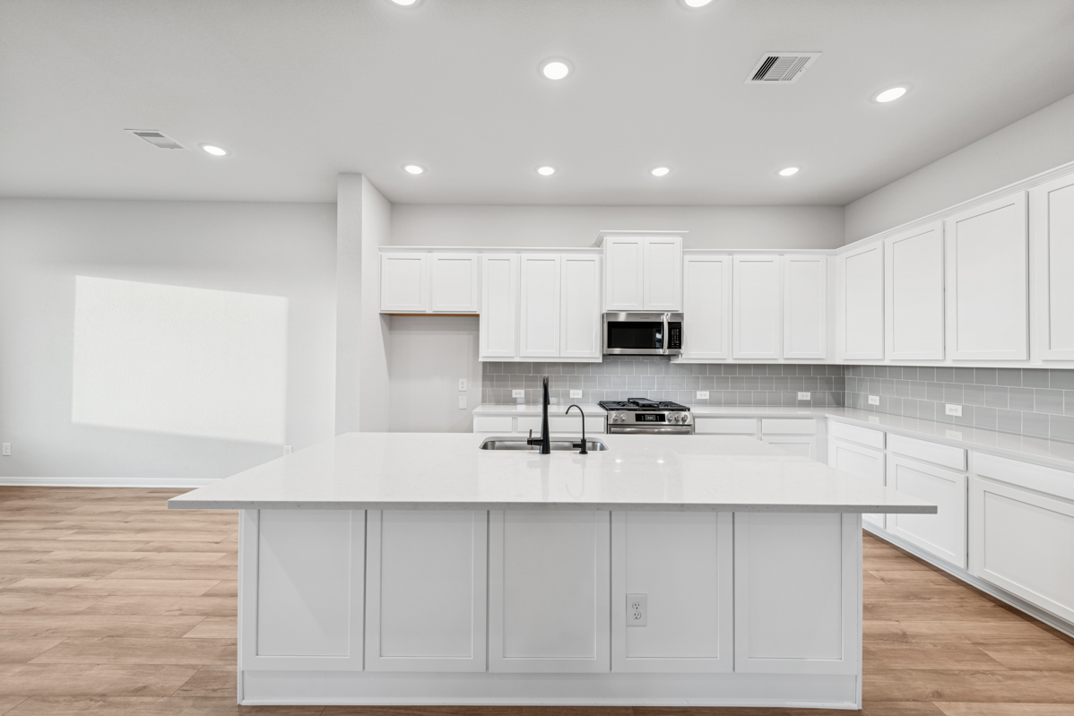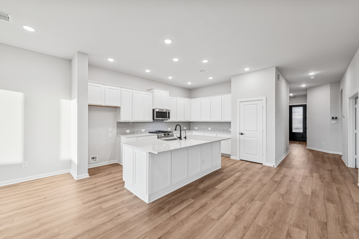 The open-concept kitchen showcases an abundance of cabinets and a striking 8-foot island that anchors the space for entertaining or everyday living. The oversized primary suite offers a spacious walk-in super shower and generous closet space. The nearby study, visible from the kitchen, provides flexible use for a home office, playroom, or media area. The Gardenia brings comfort, thoughtful design, and a truly private setting together in one beautiful home.