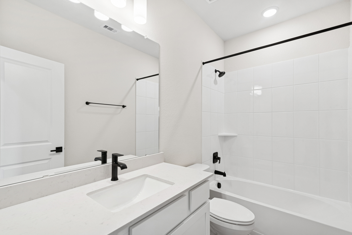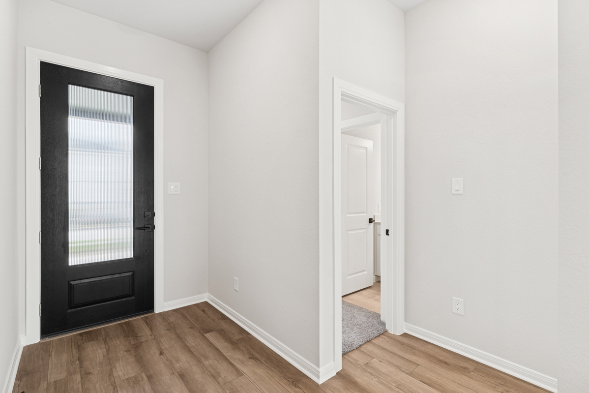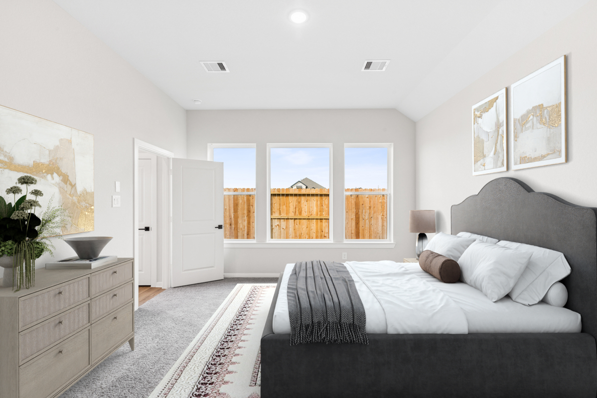 Discover a rare opportunity in Jubilee, our MODEL HOME FLOOR PLAN with soaring 12-foot ceilings, set on a reserve homesite with only one side neighbor, providing rare privacy and extra breathing room along the window-filled side of the home. The Evergreen Retreat immediately stands out with its striking army green exterior, bold black trim and garage, and cream-colored stone that adds beautiful contrast and curb appeal.
