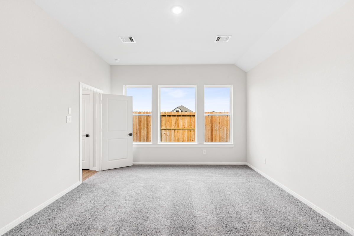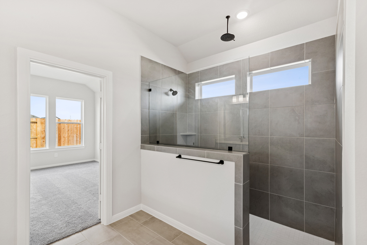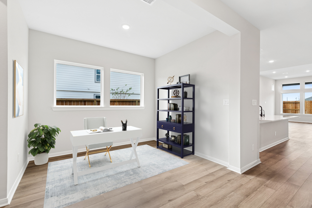 An open front study provides flexible space for work or unwinding. The private Owner’s Retreat includes a spa-inspired bath with a large walk-in shower and rain shower head. From the covered patio, enjoy serene reserve views and a little extra space from nearby homes.