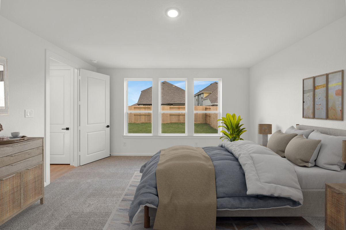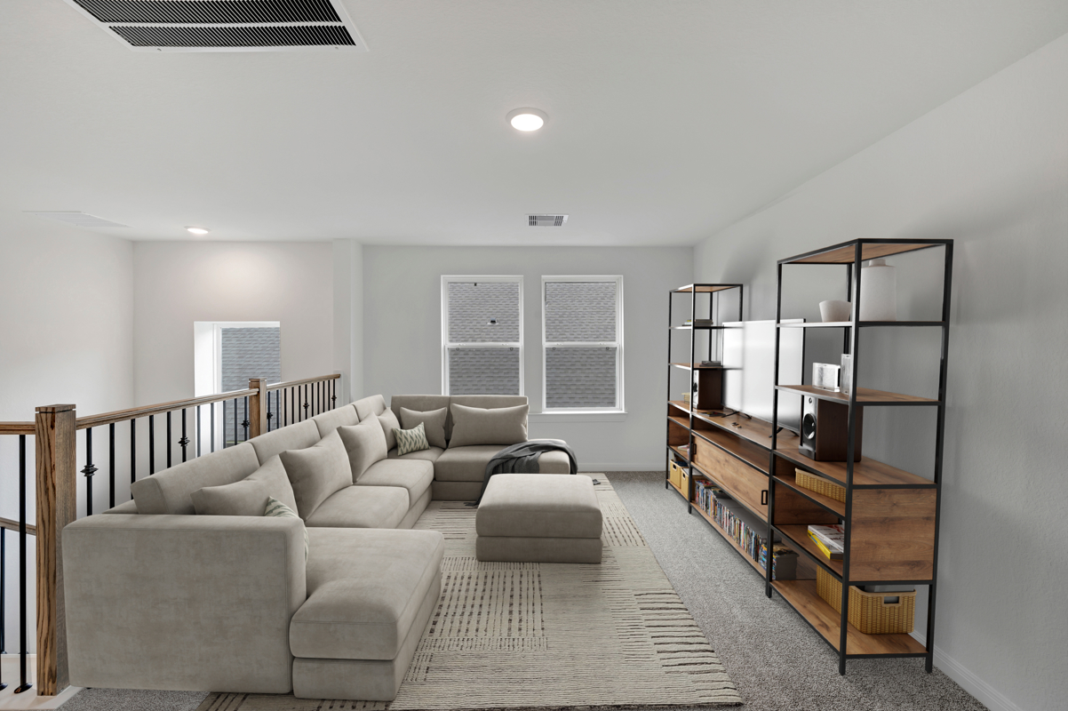 Upstairs, you’ll find a large game room and 3 secondary bedrooms that are the largest secondary bedrooms offered across all of our floor plans, providing exceptional comfort, flexibility, and storage. One of the secondary bedrooms features its own private en suite bath, making it ideal for guests or multigenerational living.
