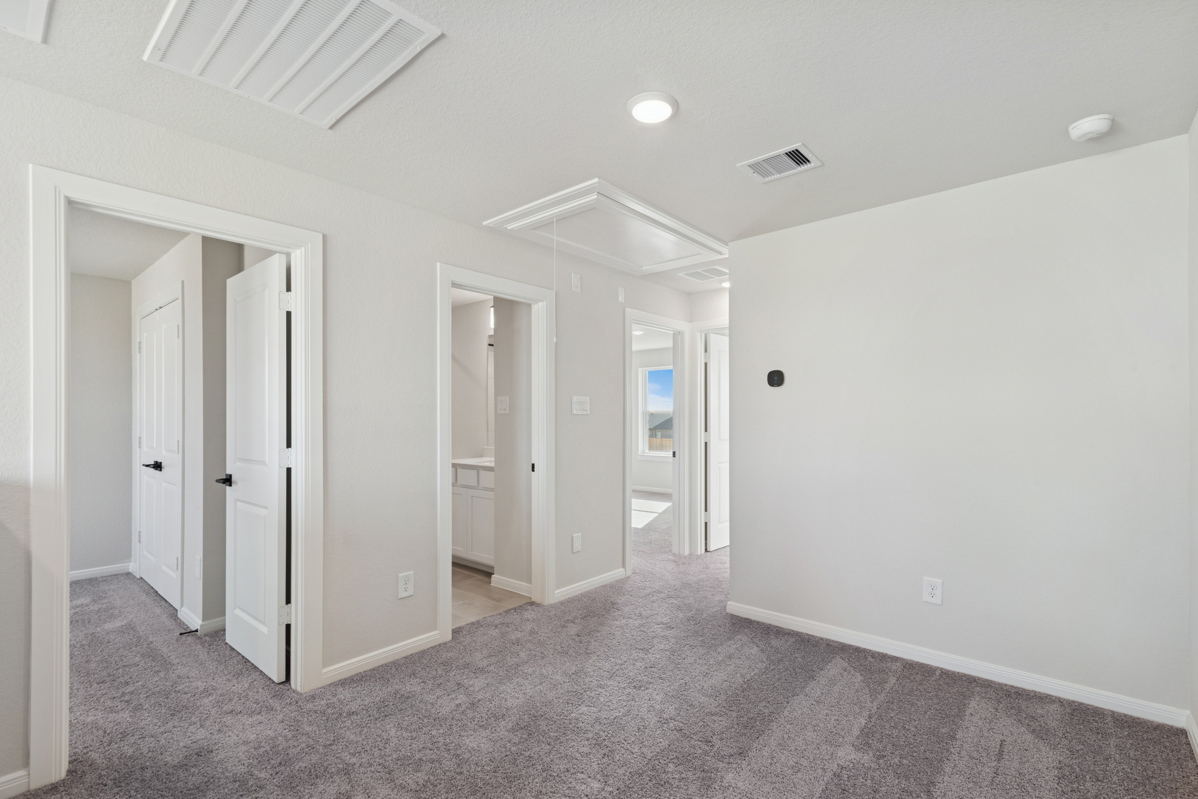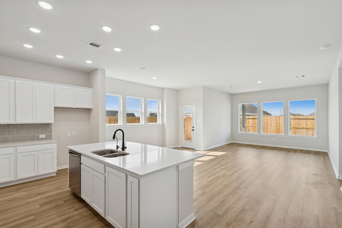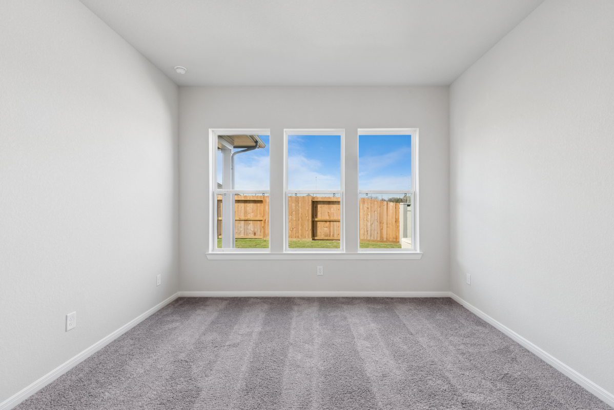The 5-bedroom, 3-bath layout features an open kitchen with a large island and an abundance of cabinets overlooking the family and dining rooms, ideal for everyday living and entertaining. A private front study offers ideal space for a home office. The Owner’s Retreat is located at the back of the home and includes a separate tub and shower, double sinks, and a spacious walk-in closet. A secondary bedroom downstairs overlooks the front porch and sits next to a full bath, creating a comfortable guest or multigenerational option.