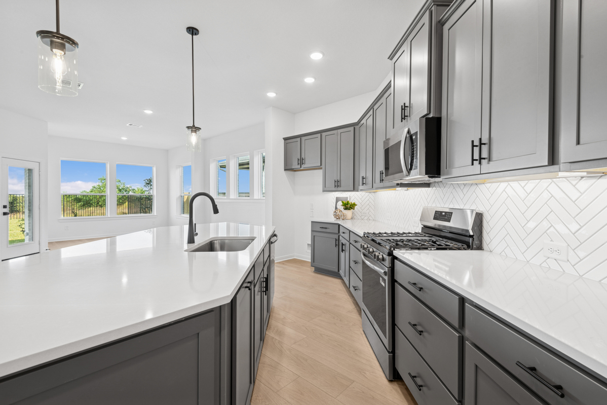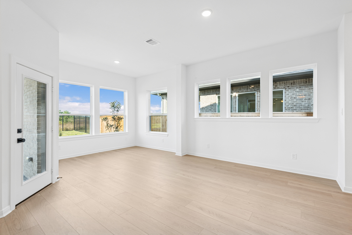 Don’t miss this limited opportunity to own a home on a spacious 60' homesite in The Grand Prairie, Hockley’s highly sought-after master-planned community. NO REAR NEIGHBOR. The Getty floor plan by David Weekley Homes offers a seamless blend of comfort, style, and versatility—backing to a serene nature reserve with no rear neighbors for added privacy and peaceful views. Inside, sunny gathering spaces and quiet, well-placed bedrooms contribute to a layout that feels both expansive and intimate. The open-concept design connects the family room, dining area, and sitting space to the heart of the home: a gourmet kitchen featuring generous prep areas, abundant storage, and a large island that’s ideal for everything from everyday breakfasts to holiday celebrations. The Owner’s Retreat offers a true escape with its spacious design, spa-inspired en suite bath with a Super Shower, and a double-sided walk-in closet built for both convenience and style. Two oversized secondary bedrooms are connected by a Jack-and-Jill bath, offering comfort and space for growing needs or guests. A private study adds flexibility to the home, whether you’re working from home, starting a personal fitness area, or creating your own cozy lounge. A powder bath is also thoughtfully placed for guest use. Step outside to enjoy your covered back patio, where views of the untouched natural surroundings create the perfect space to relax and unwind.
