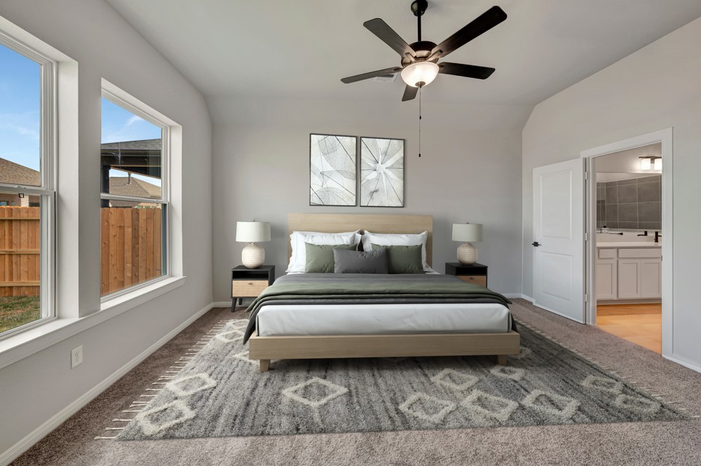 Design excellence and attention to detail make every day amazing with The Aftonwood by David Weekley Homes in The Grand Prairie. Growing minds and unique decorative styles will have a superb place to call their own in the beautiful secondary bedrooms.