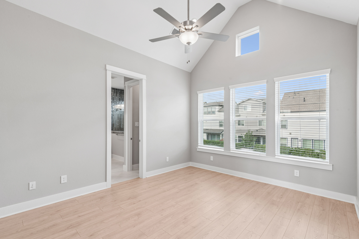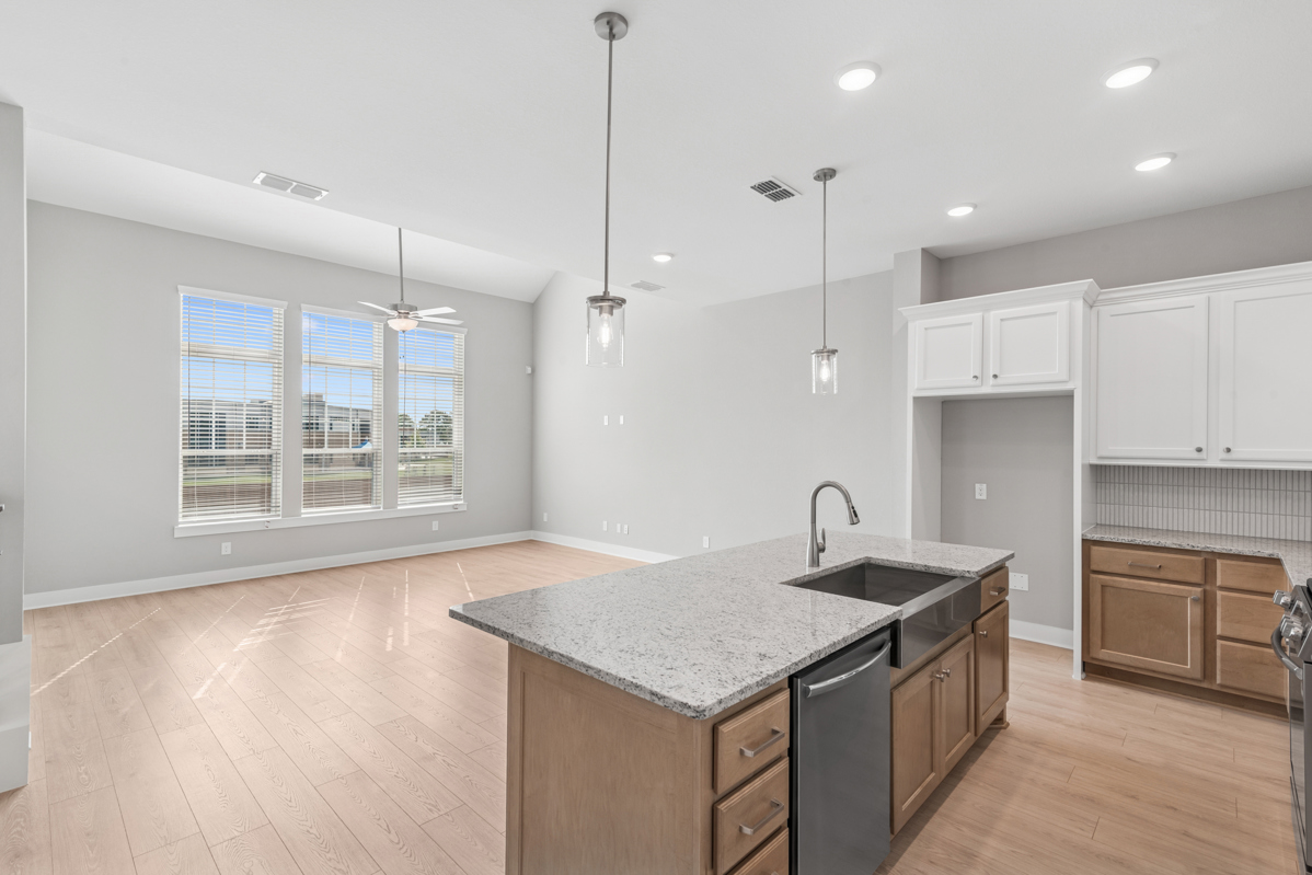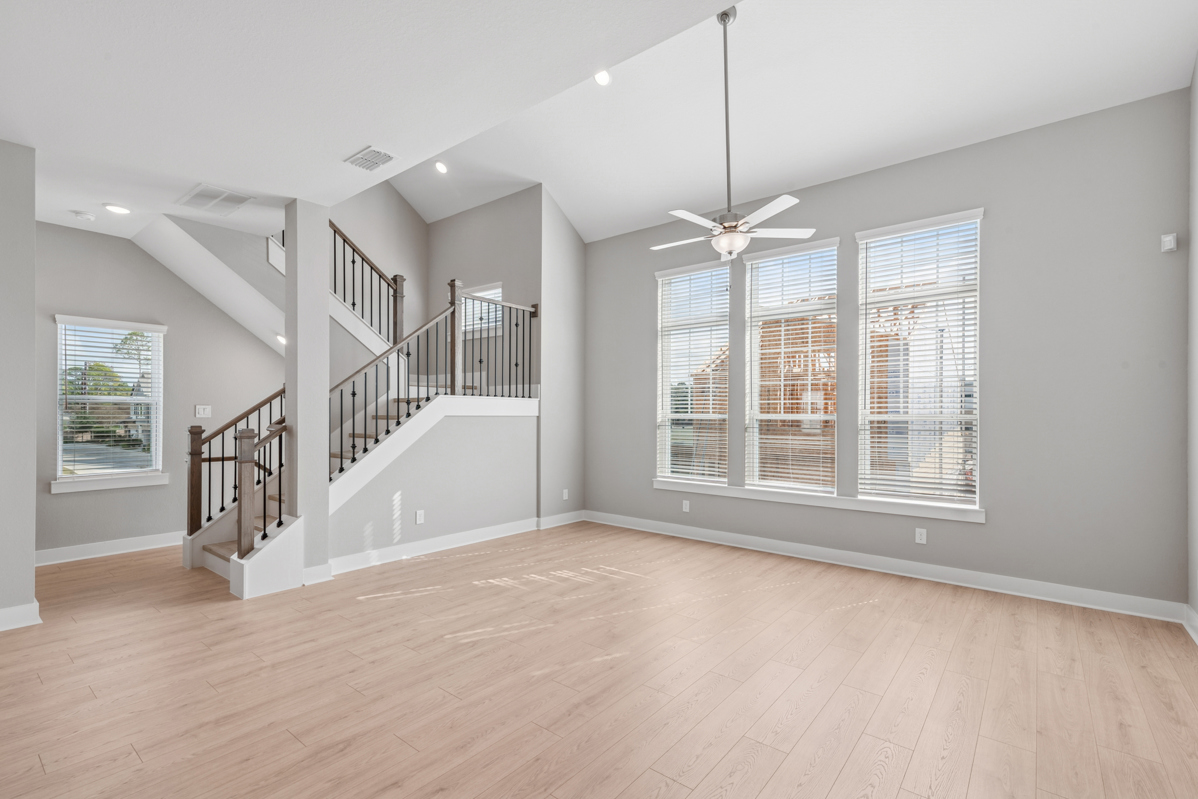 On the second floor, the living room features a wall of windows that fills the space with natural light and a soaring ceiling that enhances the open feel. The kitchen flows seamlessly into the family room, making it ideal for entertaining. The Owner's Retreat includes a large walk-in closet, spa-inspired super shower, and privacy from the secondary bedrooms.