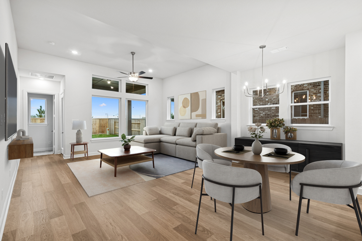 Introducing The McAllen, a stunning two-story, 5-bedroom home designed for modern living. This thoughtfully crafted floor plan includes 2 bedrooms on the main level and flexible spaces such as a dedicated study and an upstairs retreat, perfect for relaxation or entertainment.