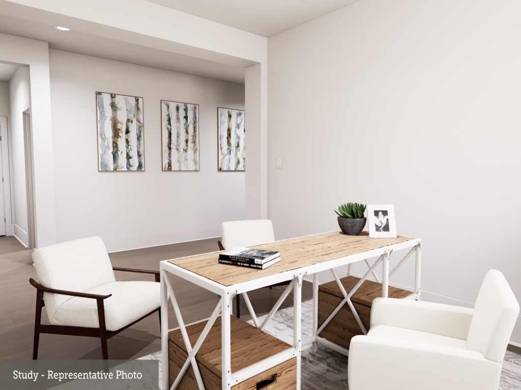 The first floor Owner’s Retreat offers a relaxing escape with a spa inspired Owner’s Bath that includes a garden tub, double vanities, and a generous walk in closet. A secondary bedroom with a full bath and a bright study complete the main level, providing flexibility for guests or a home office.