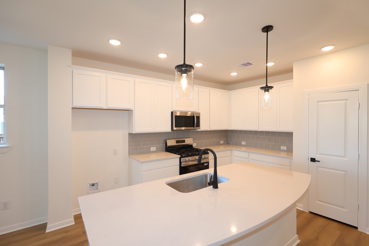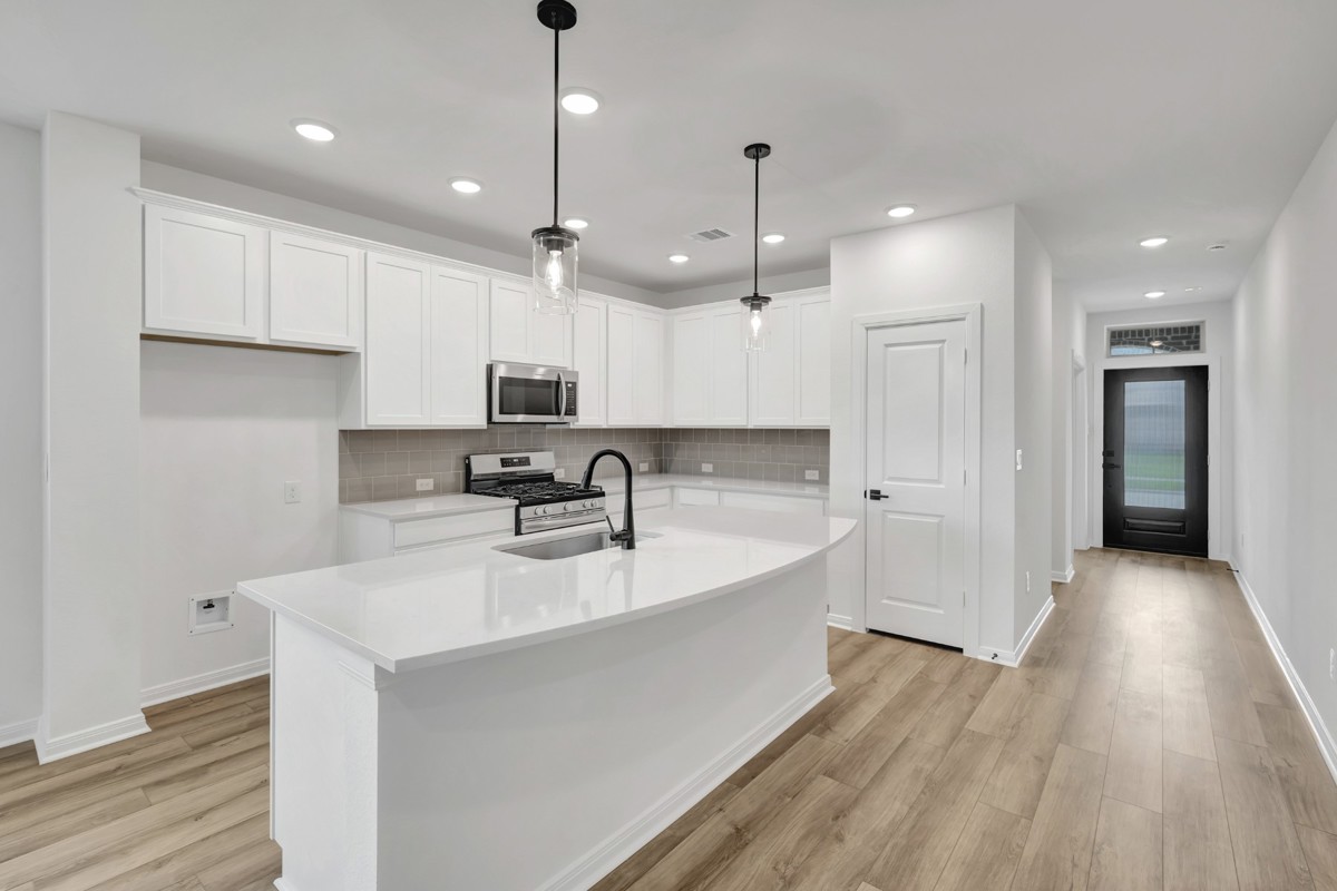 At the front of the home, a private study with elegant French doors provides the perfect space for a home office, reading lounge, or creative retreat. The bright and spacious kitchen features a sleek chef’s island and offers a collaborative space for preparing everything from holiday feasts to everyday meals.