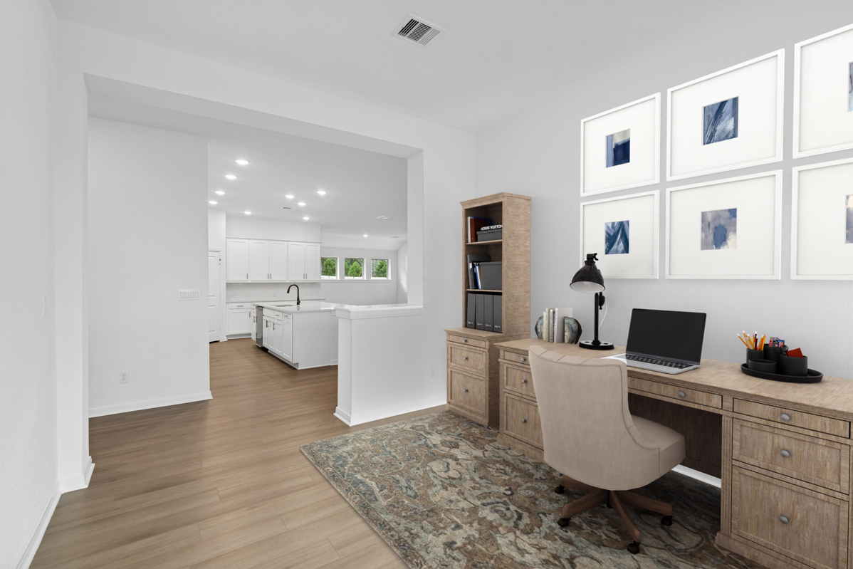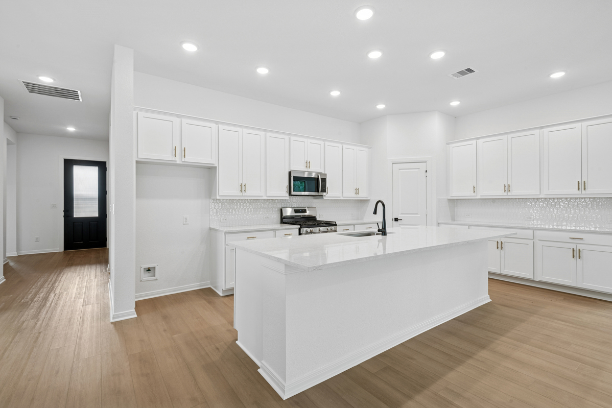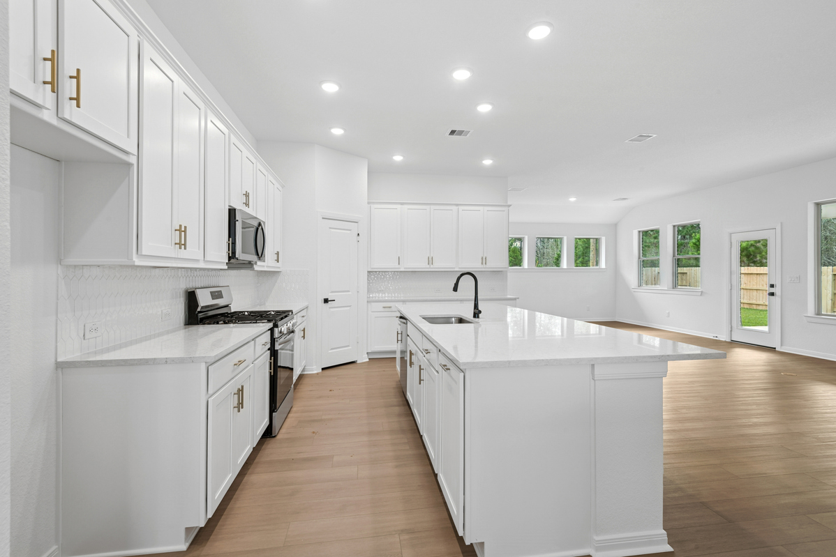 Welcome to the dynamic comforts and bold luxuries of The Ridgegate by David Weekley floor plan with 4 bedrooms and 3 full baths, plus a 3-car garage. Your gourmet kitchen includes a corner pantry and a gathering-place quartz island which overlooks the family living space. Open-concept living spaces fill with gentle sunlight and your inspired design style. Bring your dreams of a home office, art studio, or family movie theater to life in the versatile open study. Your oversized Owner’s Retreat provides an ideal space to begin and end every day in luxury, with a spa-like super shower with designer tile, double sinks and walk-in closet. Each spare bedroom and the secluded guest suite provides an exceptional place to grow. Enjoy surrounding nature with tall trees and no back neighbors in Magnolia's Escondido. Enormous covered back patio is pre-plumbed for an outdoor kitchen and fireplace. Room for a pool!