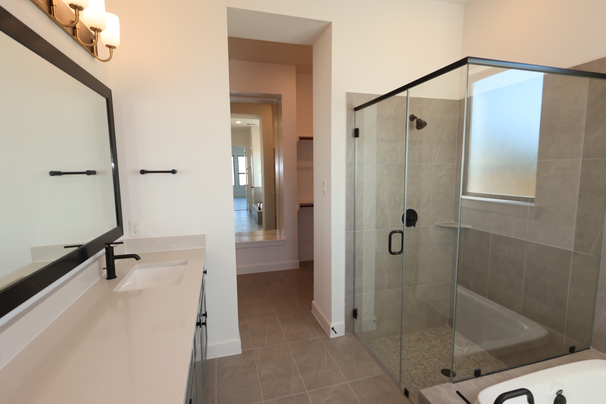 The Owner’s Suite is a private retreat with a spa-inspired bath, complete with a soaking tub, separate shower and dual vanities.