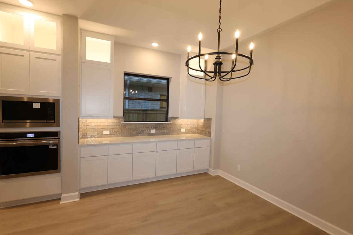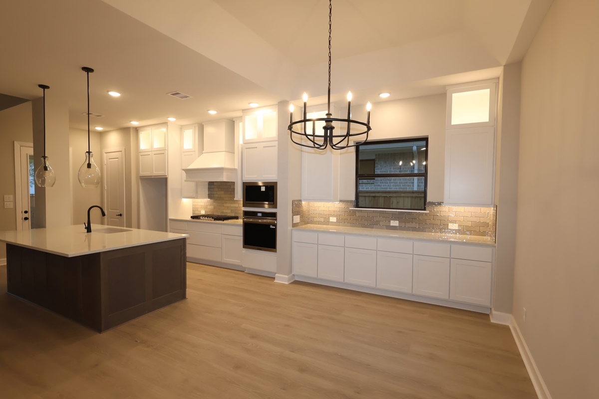Ask about low-interest rate promotions available on this home.Welcome home! Located in the center of everything in the new Kresston community, this spectacular one story home features a brick and stone exterior, bronze framed windows, gorgeous luxury vinyl floors, designer light fixtures and an open concept floor plan. The sleek and functional kitchen with Frigidaire stainless appliances, built-in oven and microwave, 36" gas cooktop with deco vent hood. The kitchen opens up to the family room with 12' ceilings, and the dining features gorgeous ceiling details and built-in buffet. Owner's retreat offers unparalleled elegance with large walk-in shower with a rain head and dual vanities. Laundry room features a folding table and there is a designated backpack rack off the garage entrance. Three additional bedrooms complete the home (one has an en-suite bath with tiled shower. Plus covered patio, conditioned attic space, full gutter and sprinkler system.