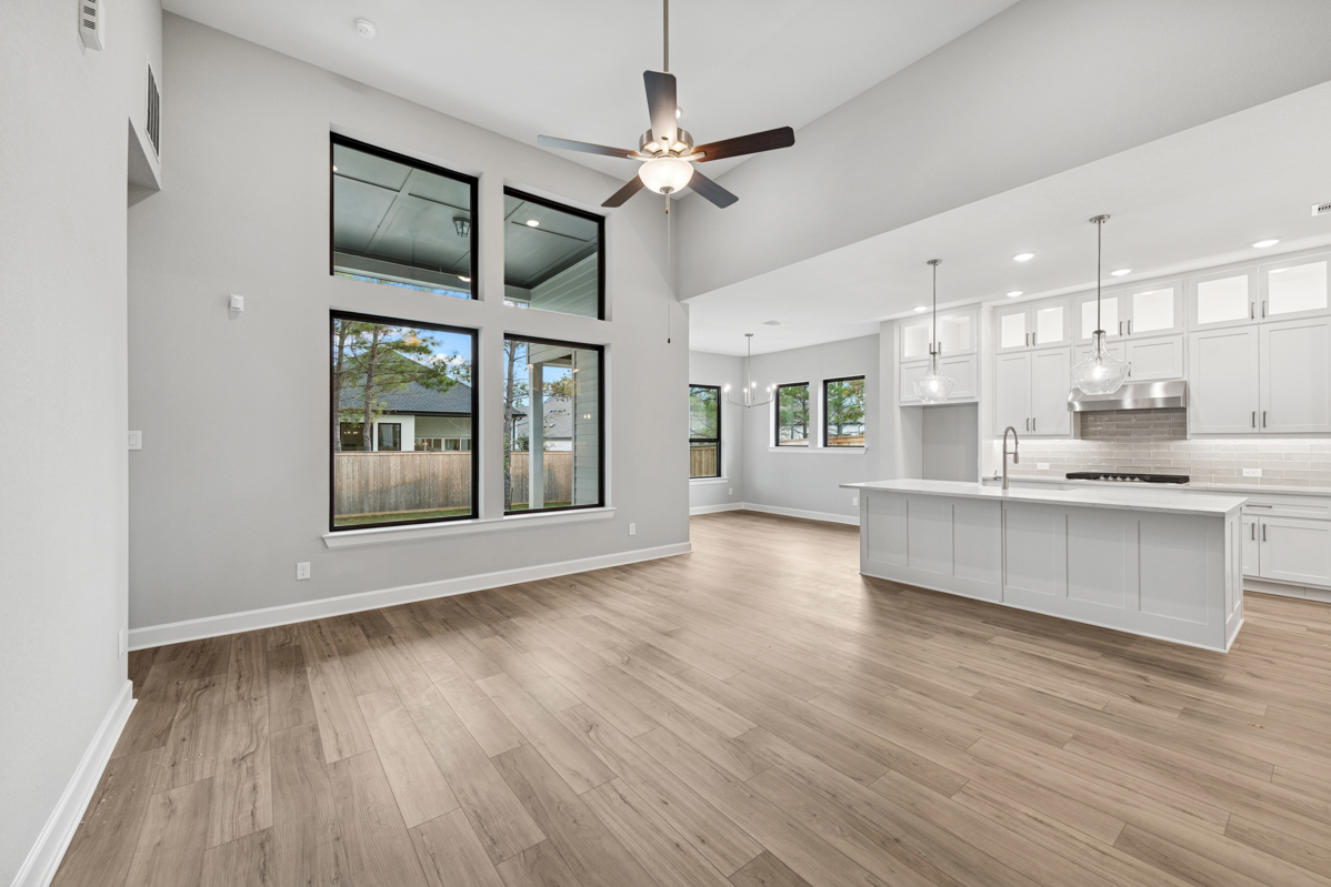 The Primrose, built by David Weekley Homes in Kresston, features 4 bedrooms plus study, 4 bathrooms, and a 4-car garage! This home offers a spacious and luxurious living experience with an open-concept design, perfect for both everyday living and entertaining. The large picture windows seamlessly connect the interior to the exterior, where a covered back patio awaits, ideal for outdoor gatherings or relaxation.