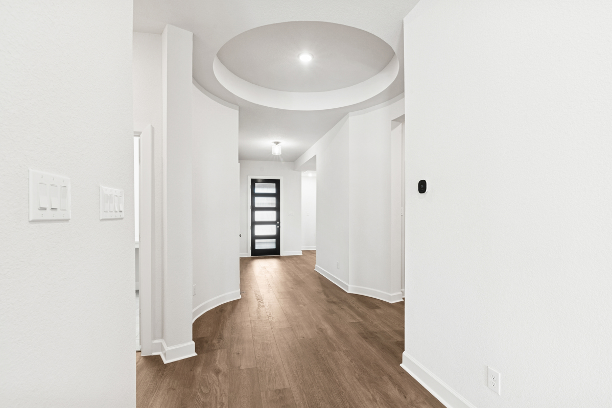 Step through the striking 8-foot front door and be welcomed by a grand rotunda entryway that sets the tone for the spacious, flowing layout. With 10-foot ceilings and luxury vinyl plank flooring throughout all main living areas, the study, and the Owner’s Retreat, the home feels bright, modern, and connected. The living room opens to a large covered rear patio, offering the ideal space for indoor-outdoor gatherings.