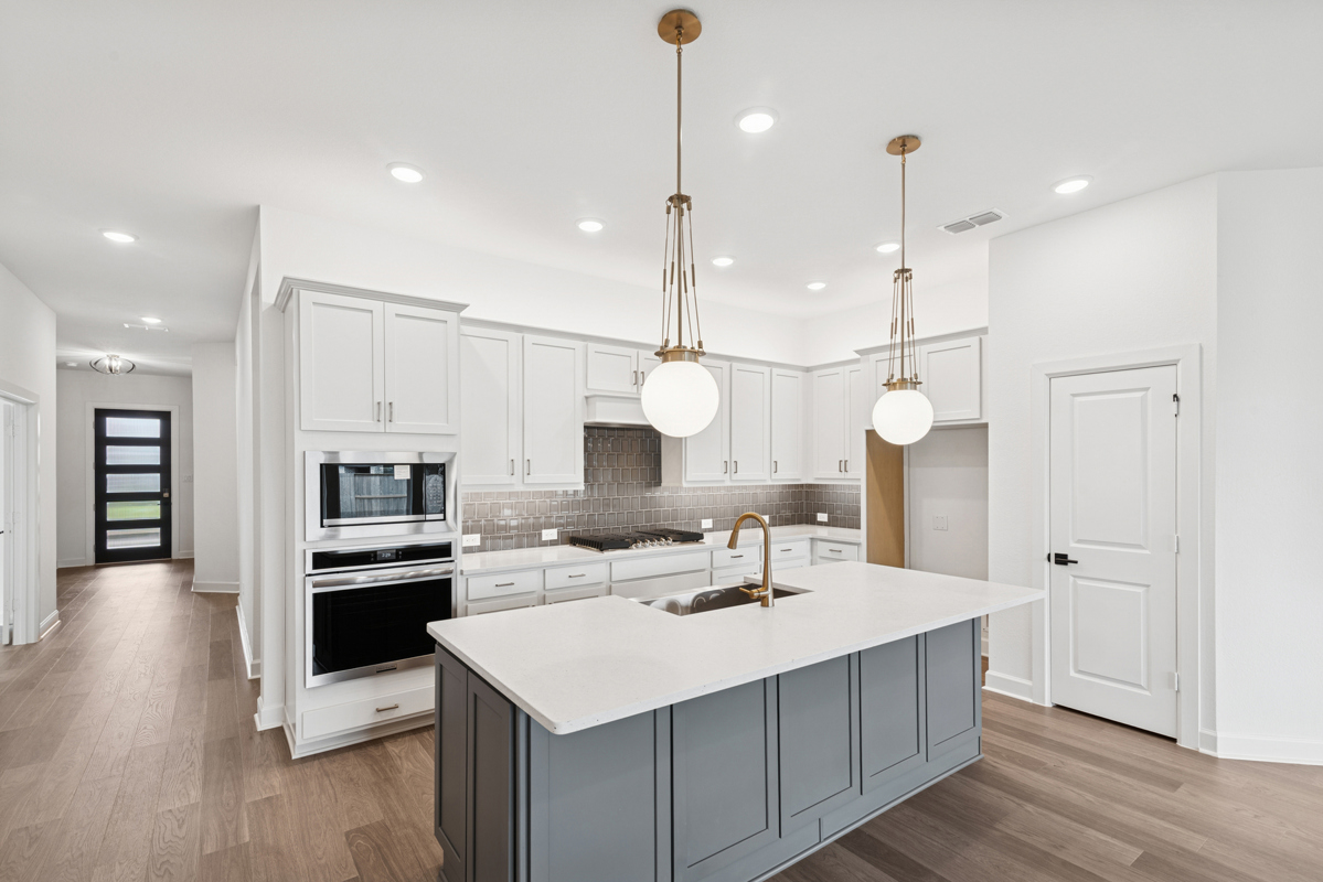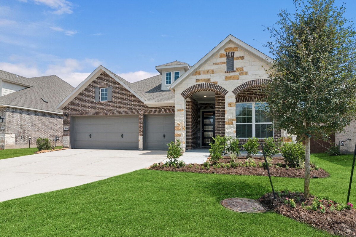 Welcome to the classic and contemporary luxuries of this impressive new home for sale in Meridiana! This beautiful home offers a brick and stone exterior, 8-foot front door, 10-foot ceilings and vinyl plank floors throughout all common areas and Owner's Retreat!