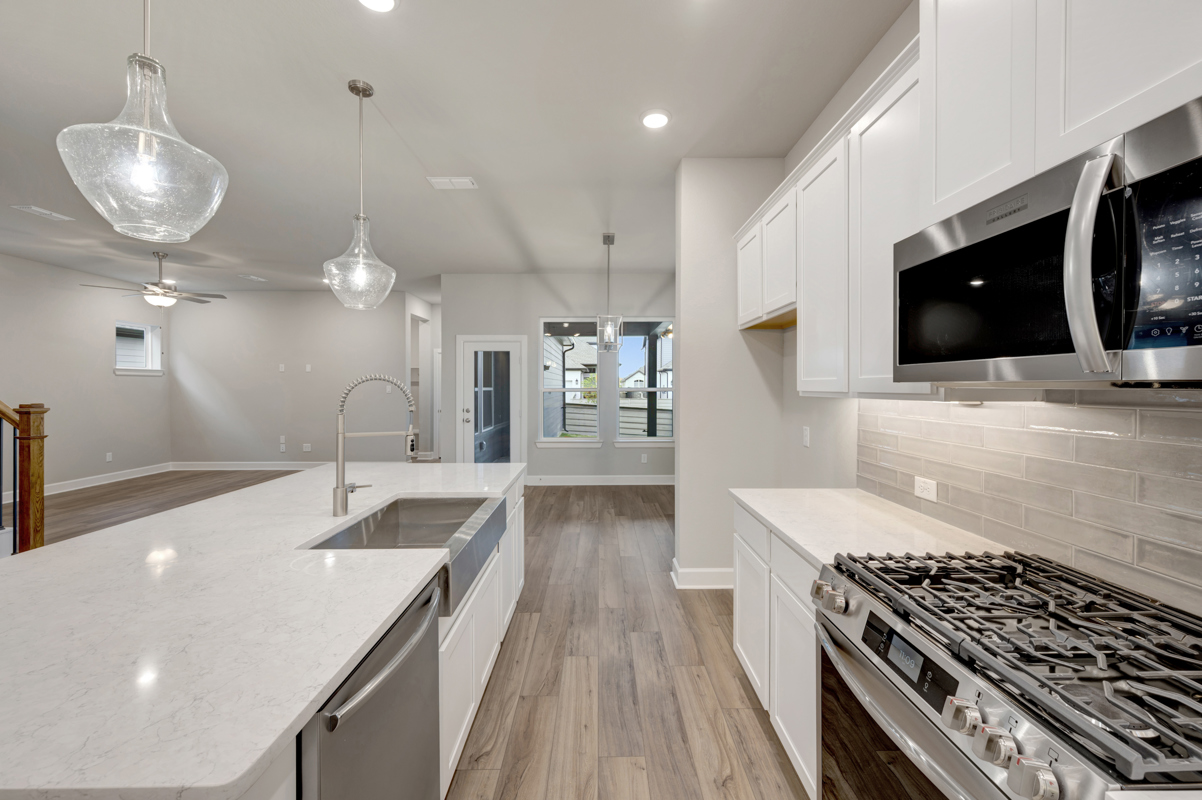 The oversized Owner’s Retreat features elegant tray ceilings and a spa-inspired Owner’s Bath with a luxurious rain showerhead. Energy-efficient features include a tankless water heater, conditioned attic, and top-tier energy performance for lasting comfort and savings.