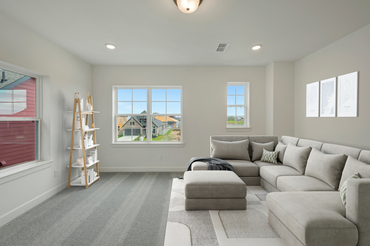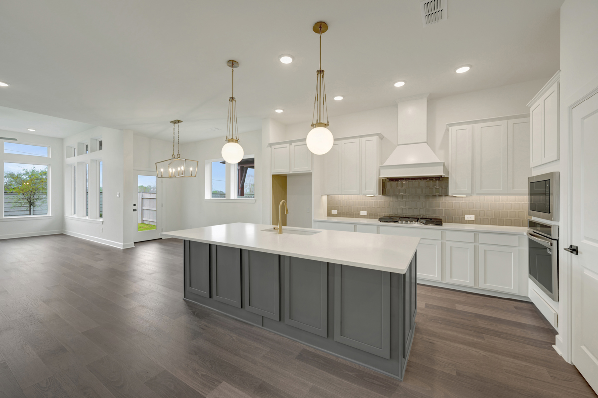 The gourmet kitchen includes a large island and walk-in pantry and flows seamlessly into the family and dining areas, making it perfect for entertaining. The Owner’s Retreat offers a peaceful escape with a tray ceiling, spa-inspired Owner’s Bath, and an oversized walk-in closet.