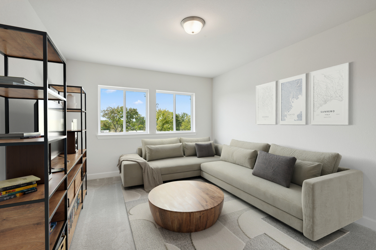 Innovative craftsmanship and stunning gathering spaces welcome you to this new home in Pomona. The upstairs retreat in this new home for sale in Manvel, Texas, provides space to design your ideal family movie theater or fun and games zone.