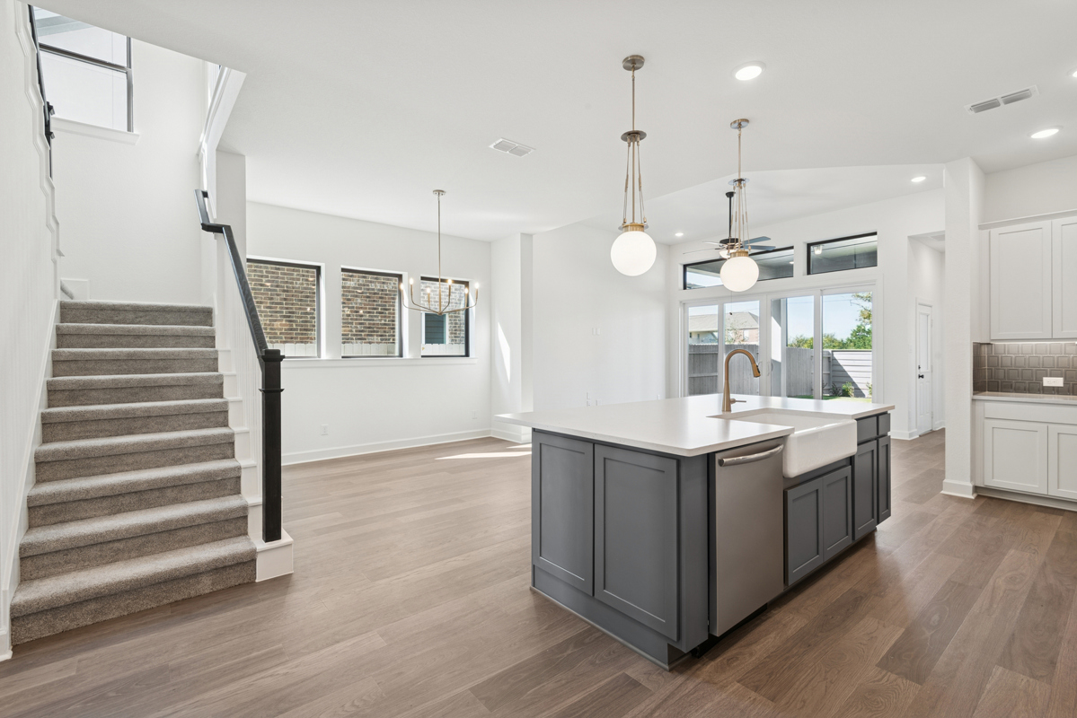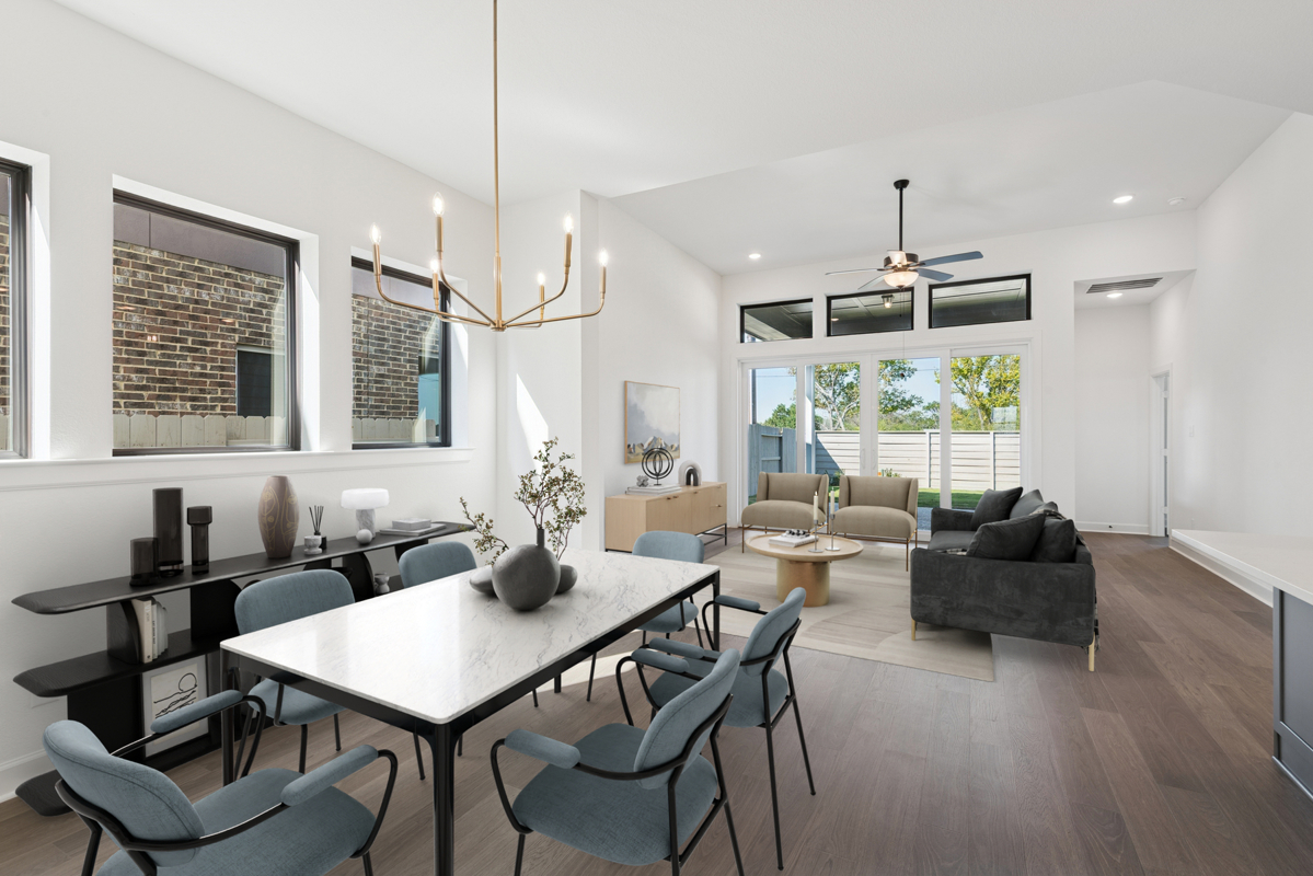 Design expertise and a dedication to craftsmanship inform every inch of this new home in Pomona. The beautiful family and dining spaces in this new home in Manvel, Texas, are ideal for hosting holiday gatherings and relaxing quiet evenings together.