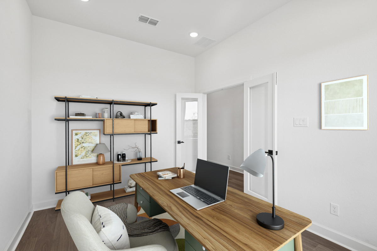 The front study makes a great home office or a welcoming lounge. Relax with a good book on the covered porch and enjoy movies and games together in the upstairs study. A trio of upstairs bedrooms give this home plenty of room for everyone to make their own.
