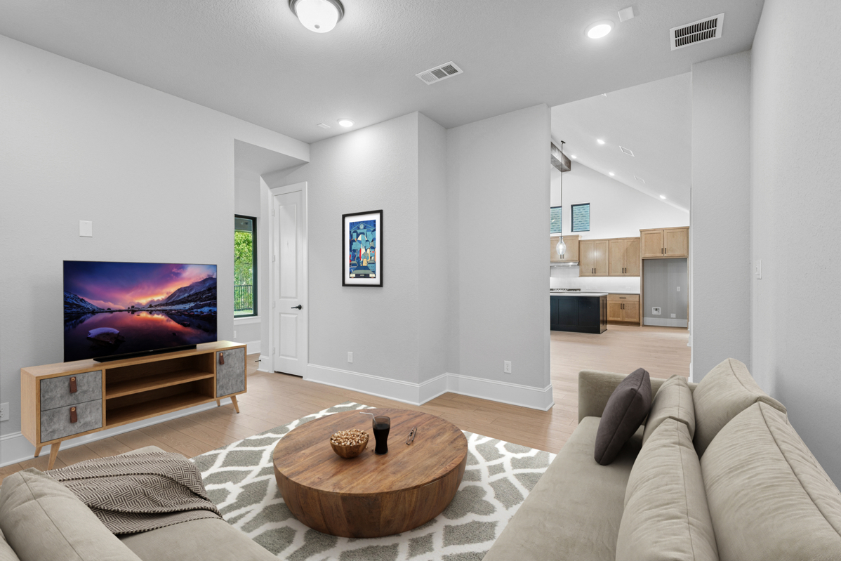 The Augustine by David Weekley Homes is a thoughtfully designed floor plan that blends vibrant living spaces with top-tier craftsmanship in the heart of Sienna in Missouri City, TX. This spacious home offers four bedrooms, three full bathrooms, one half bath, a private study, an enclosed media room, and a four-car garage—providing flexibility and functionality for growing households and entertaining alike.