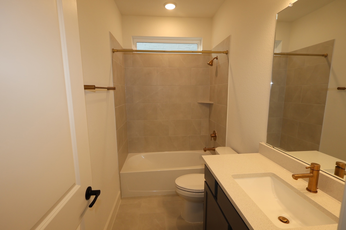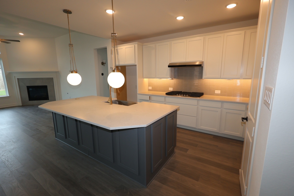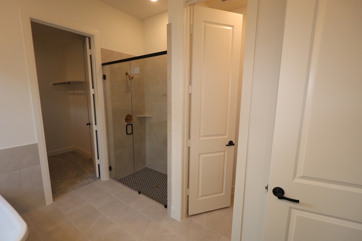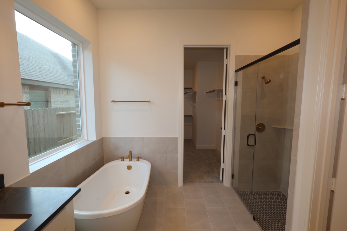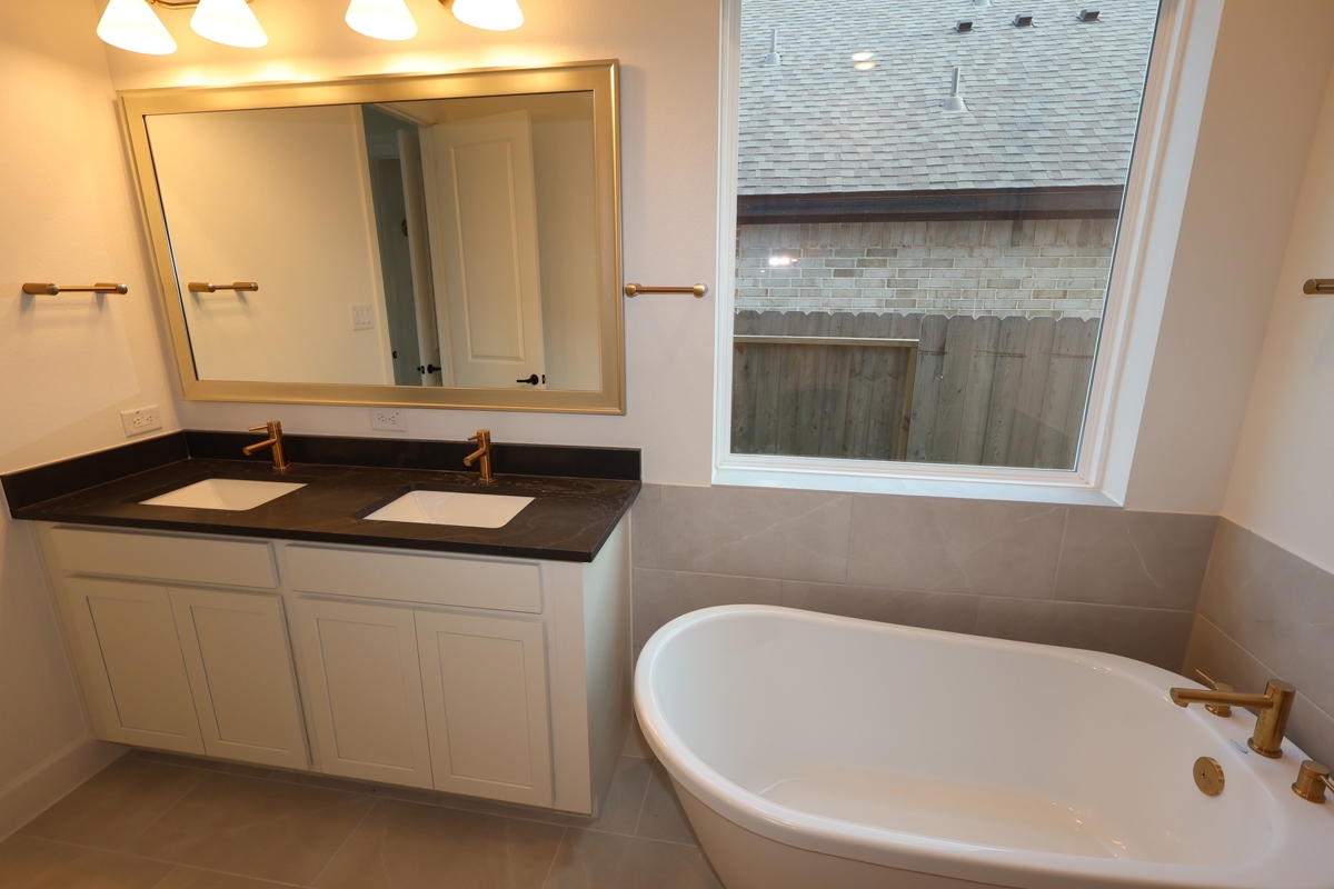 Adorned from top to bottom with exquisite design elements, the chef’s kitchen delivers exceptional storage and functionality. The luxurious Owner’s Bath features a freestanding tub, an oversized shower, and chic finishes, including Bohemian Flame Suede Silestone countertops atop crisp, painted cabinetry.