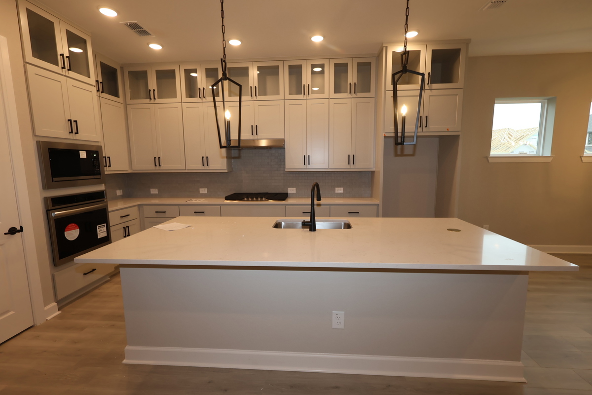 Natural light, open sight lines, and a thoughtfully designed layout make the main living areas feel bright and welcoming. The contemporary kitchen features a large island and generous prep space, perfect for cooking and entertaining.