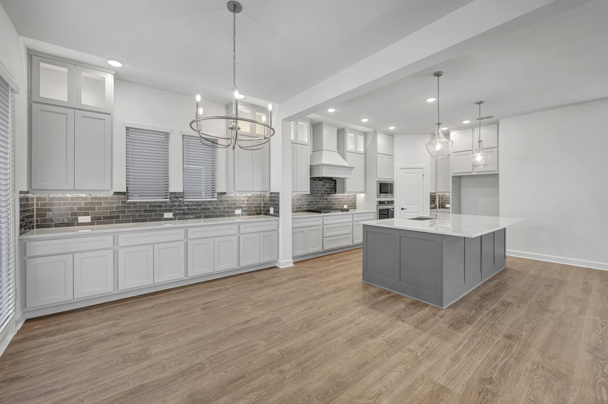 The resident chef will love the sleek kitchen, which includes a large island at the heart of the home. Built-in appliances, a gas cooktop, pan drawers, under-counter lighting, pendant lights and a dining room chandelier elevate every meal into a culinary experience.