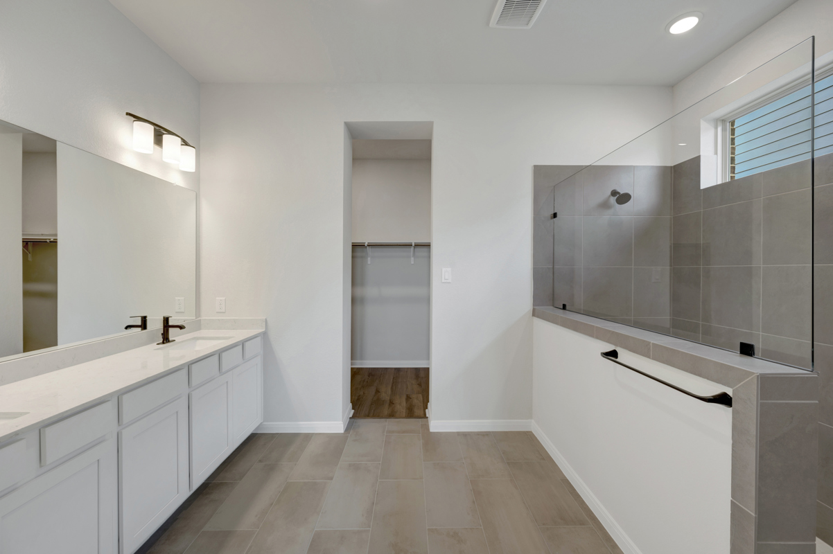 The open-concept layout includes a sunlit family room and dining area, perfect for entertaining or relaxing. A private enclosed study with French doors provides a quiet space for work or hobbies. The kitchen is a true centerpiece, featuring a large island, stainless steel appliances, a single-bowl sink, pull-out trash drawer, and a walk-in pantry—ideal for both everyday living and hosting guests. The primary suite is a luxurious retreat with a spa-like Super Shower and a spacious walk-in closet. A three-car garage offers ample room for vehicles, storage, or a workshop.