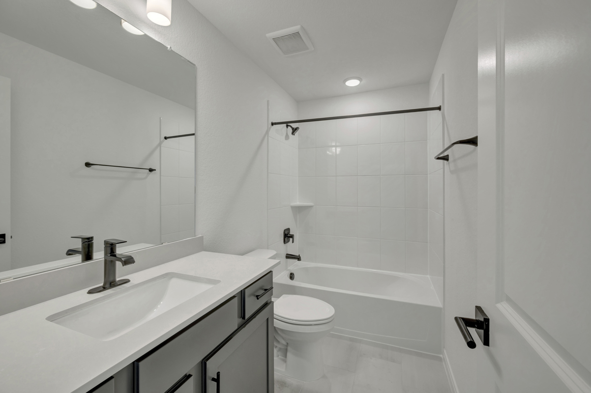 Upstairs, a media room is ideal for movie nights, and an open retreat area offers space for unwinding or hosting guests. With two bedrooms on each level, this layout provides flexibility for the entire household. Both upstairs bedrooms include spacious walk-in closets.