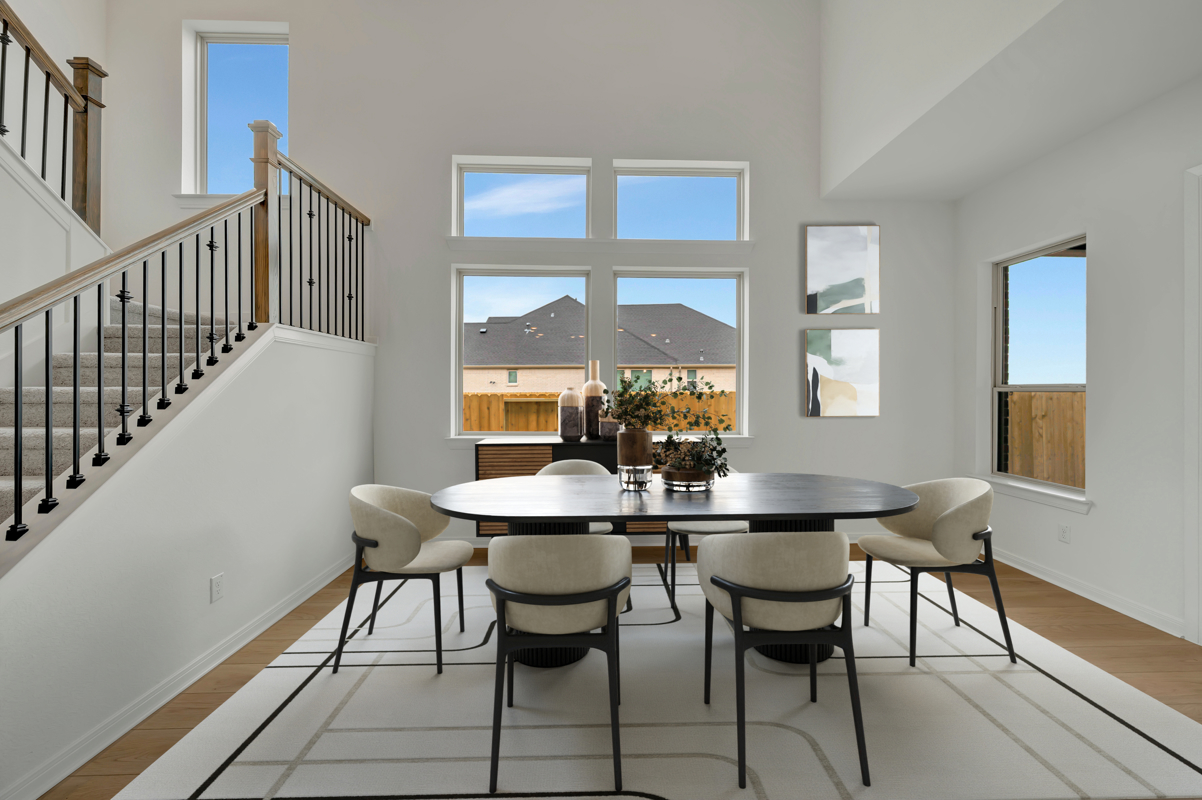 The gourmet kitchen is the heart of the home, showcasing upgraded Frigidaire Gallery appliances, a walk-in pantry, and seamless flow into the soaring 2-story dining room, where you can gather with family and friends in style. A personal study provides the perfect space to work or read, while the downstairs Owner's Retreat serves as a private sanctuary with an upgraded walk-in shower, oversized walk-in closet, and LVP flooring that extends through the retreat and closet.