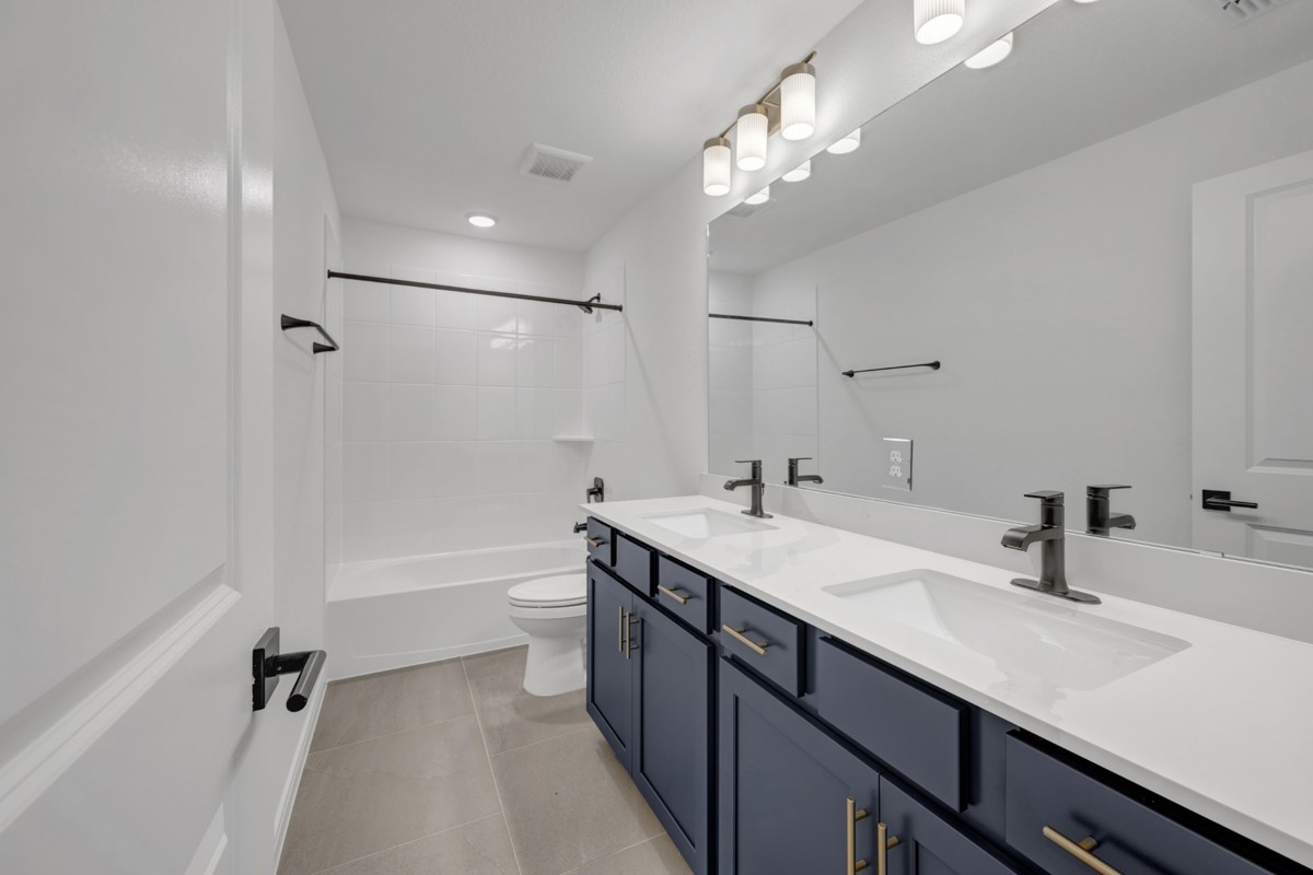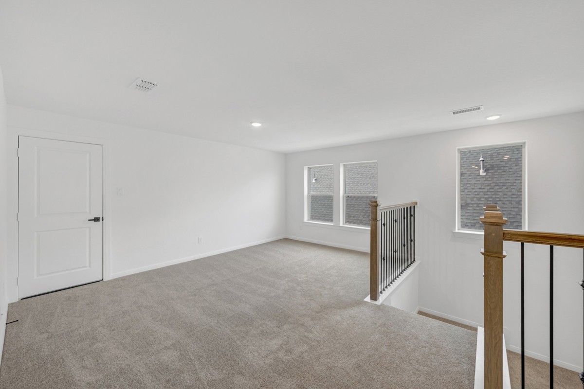 Ascend the stairs—accented with upgraded iron balusters—to discover a versatile retreat area, perfect for a game room or media space. Upstairs also features two junior bedrooms, a guest suite, and a dual-sink bathroom, offering comfort and privacy for family and visitors alike.