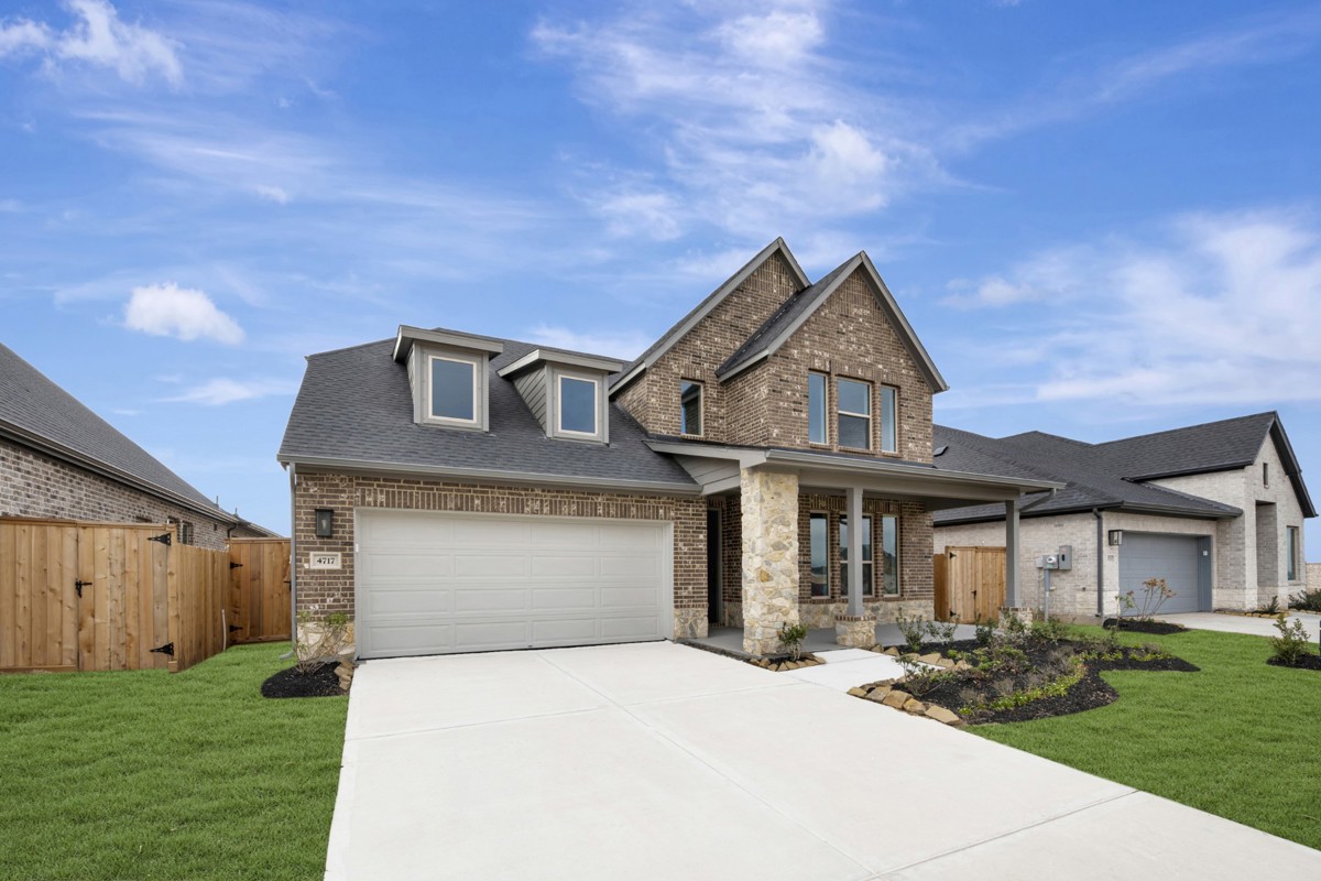 Step into elegance and comfort with this stunning 2-story Wisteria floor plan, perfectly situated with no rear neighbors for added privacy and tranquility. From the moment you arrive, the brick and stone exterior, 8' front door, and 3-car garage make a bold and beautiful first impression.