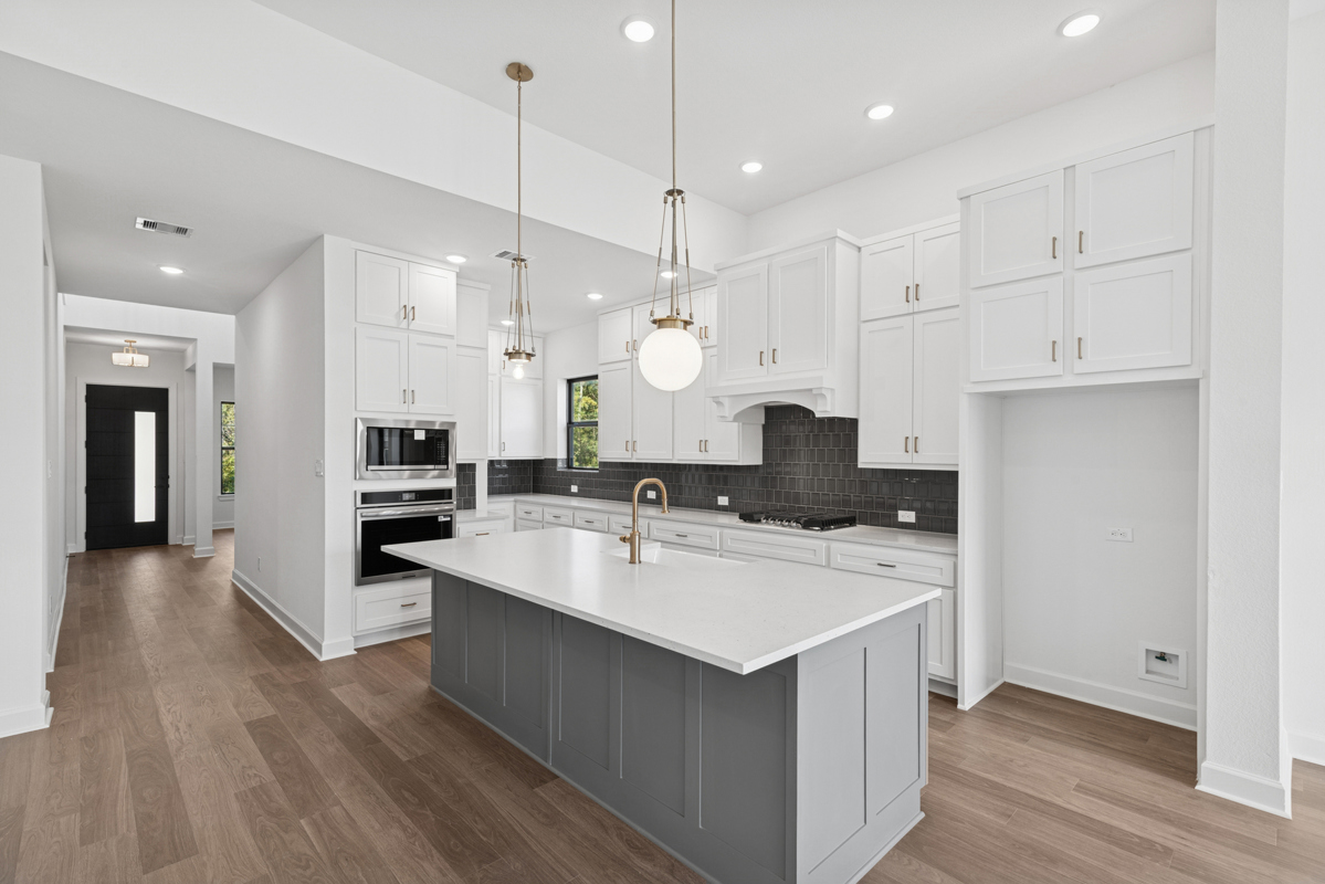 Exceptional craftsmanship combines with genuine comforts in The El Paso floor plan by David Weekley Homes in COLTON. The graceful kitchen provides an easy culinary layout for the resident chef, who can stay in the conversation thanks to the open design extending through the dining and family spaces that are illuminated by energy-efficient windows, all the way to the covered porch complete with a gas line, making it fully grill-ready for cookouts.