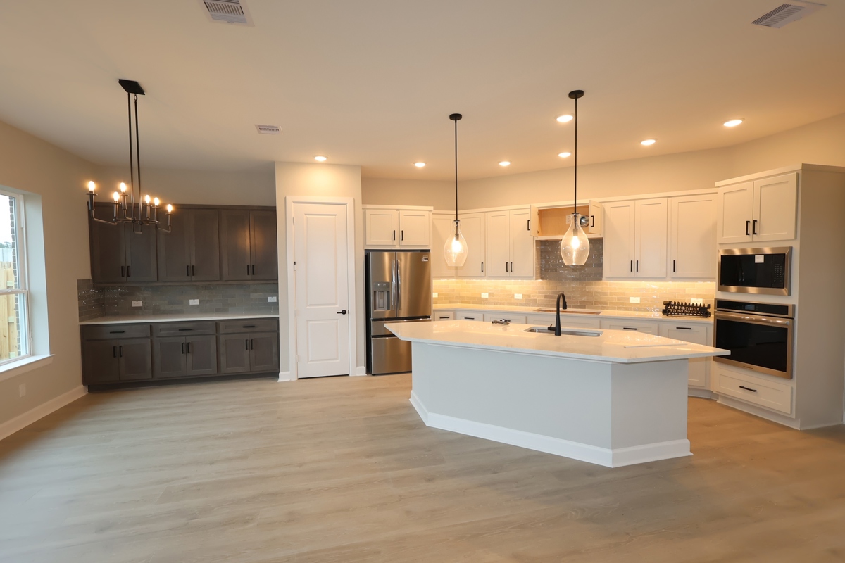 The Mesquite floor plan by David Weekley Homes in Todd Mission, TX is crafted to elevate your everyday lifestyle while offering a glamorous setting for memorable gatherings. The open-concept family and dining spaces are defined by a breathtaking 20' ceiling and expansive energy-efficient windows that flood the home with natural light while enhancing comfort and sustainability.