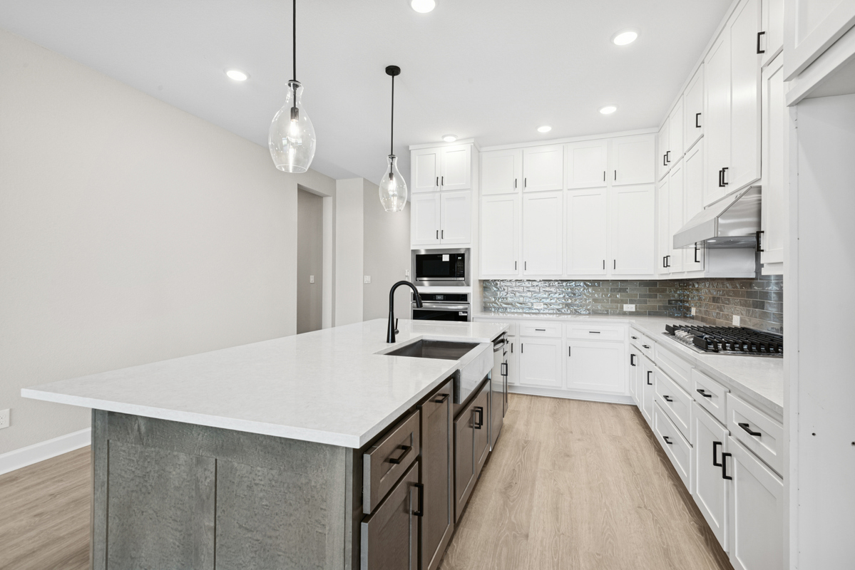 The bright gourmet kitchen with built in appliances is the heart of the home, showcasing a full-function island, deluxe pantry, and a seamless view into the dining and family rooms. Step outside to the covered rear porch, which is gas-ready for effortless grilling, to enjoy peaceful mornings or breezy evenings in your private outdoor living space.