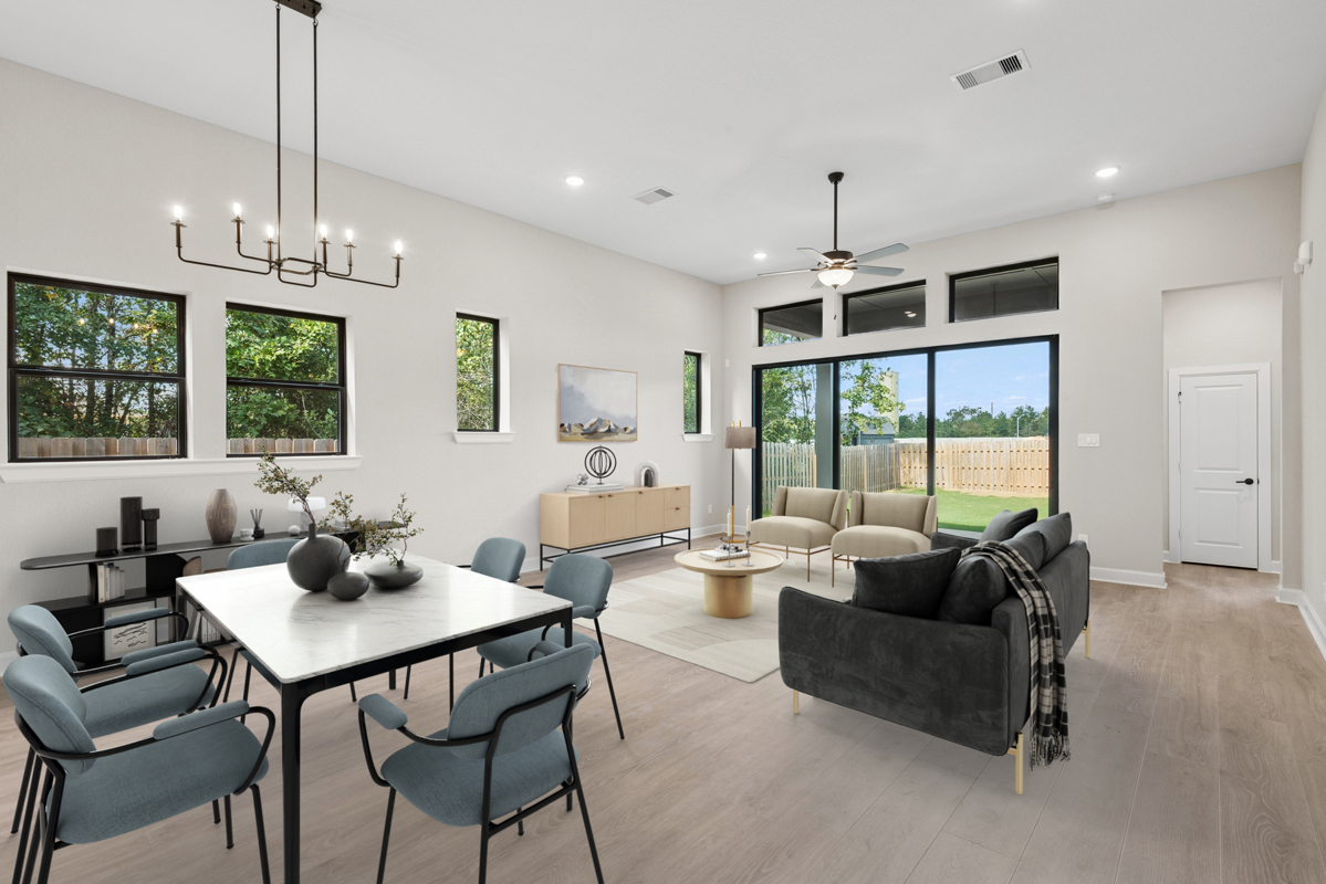 Coming home is the best part of every day in this beautifully designed Crystal Beach floor plan by David Weekley Homes, ready now in COLTON 45’ in Todd Mission! This exceptional home blends contemporary luxury with inviting comfort, featuring soaring 12' ceilings over the dining and family areas that create an open, airy atmosphere perfect for both relaxing and entertaining.